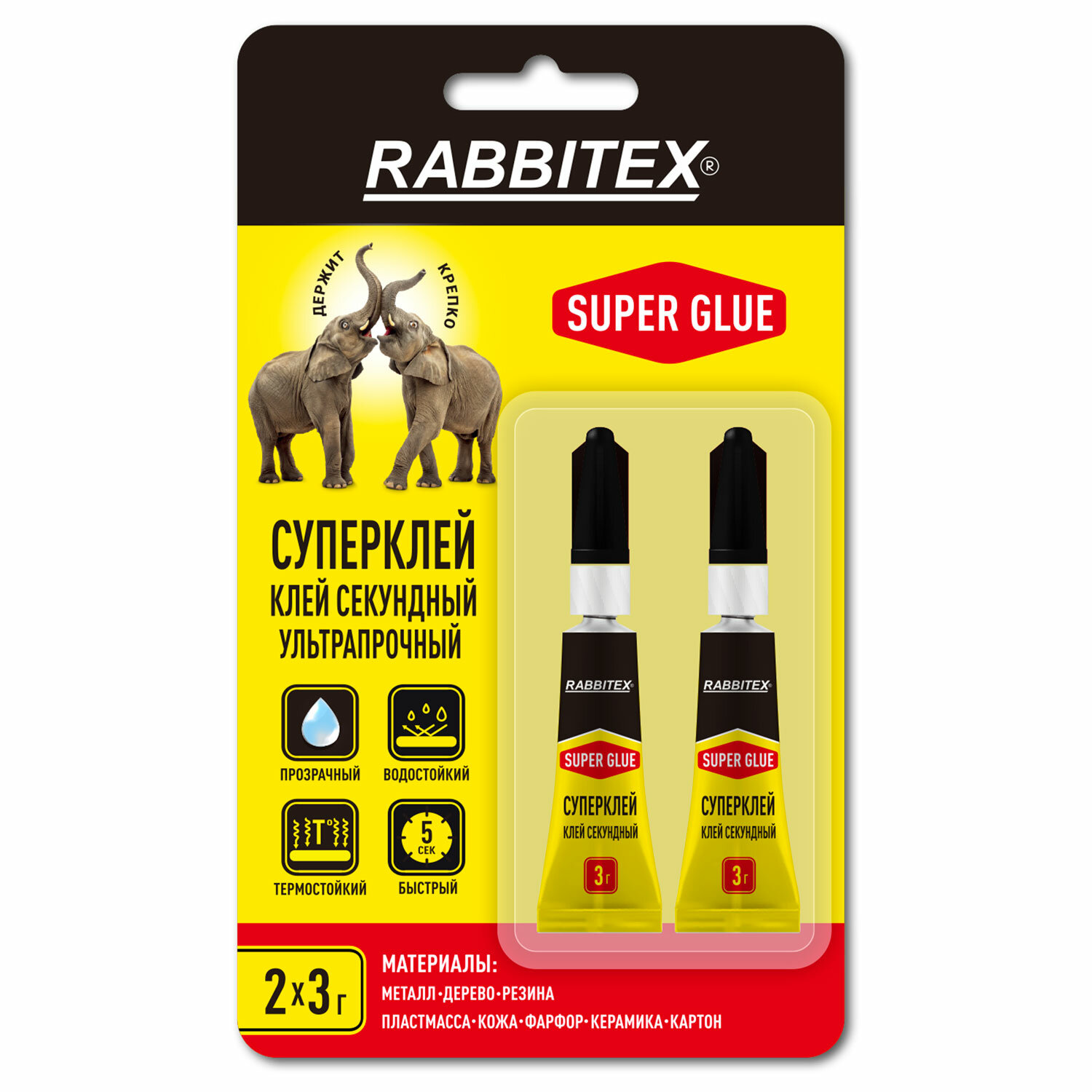 Клей секундный суперклей УЛЬТРАПРОЧНЫЙ, набор 2х3 грамма, RABBITEX, 609813
