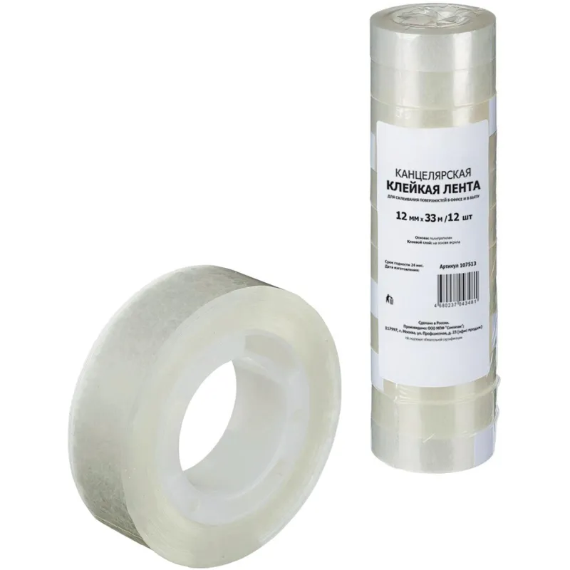 О товаре «Клейкая лента канцелярская прозрачная 12 мм x 33 м (12 штук в упаковке)»