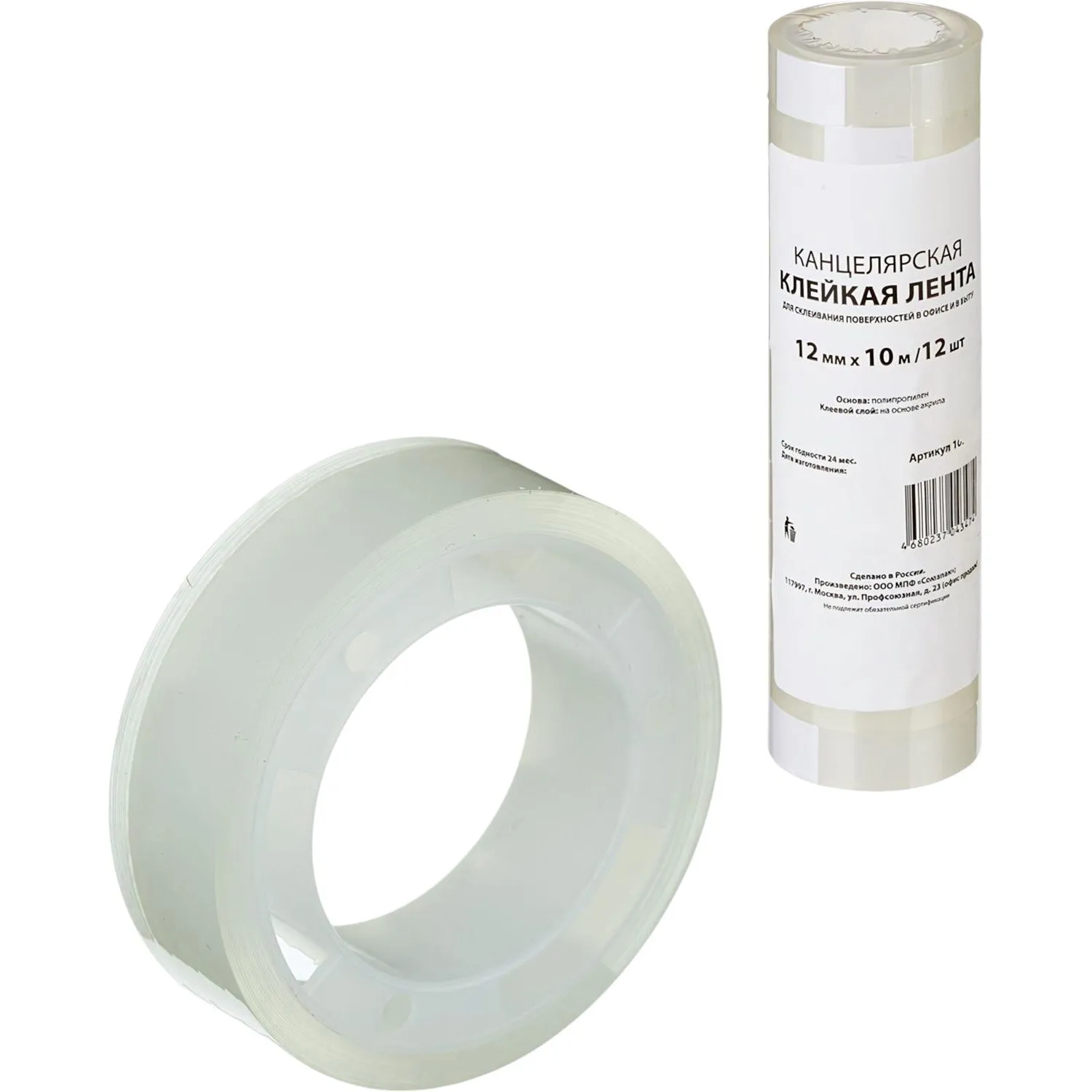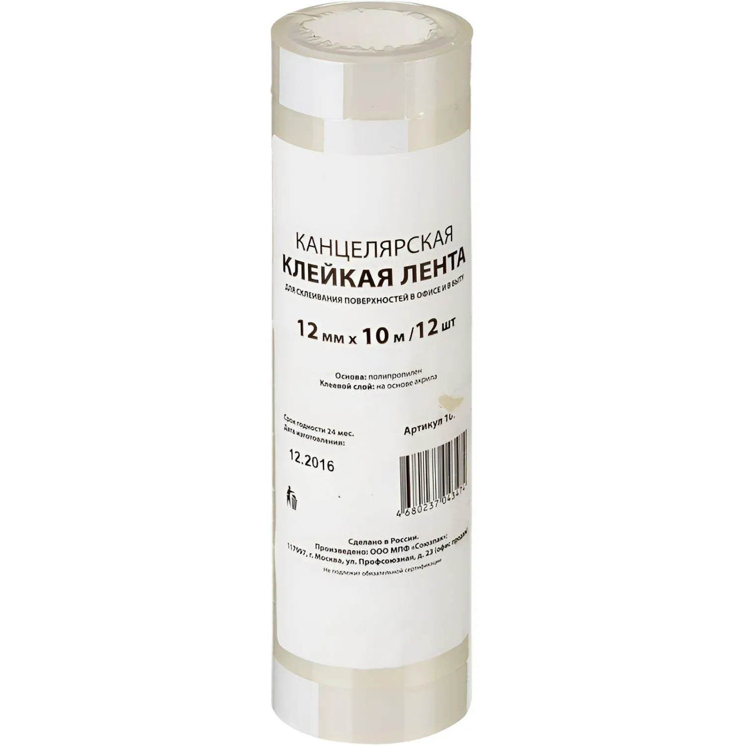 Клейкая лента канцелярская прозрачная 12 мм x 10 м (12 штук в упаковке)