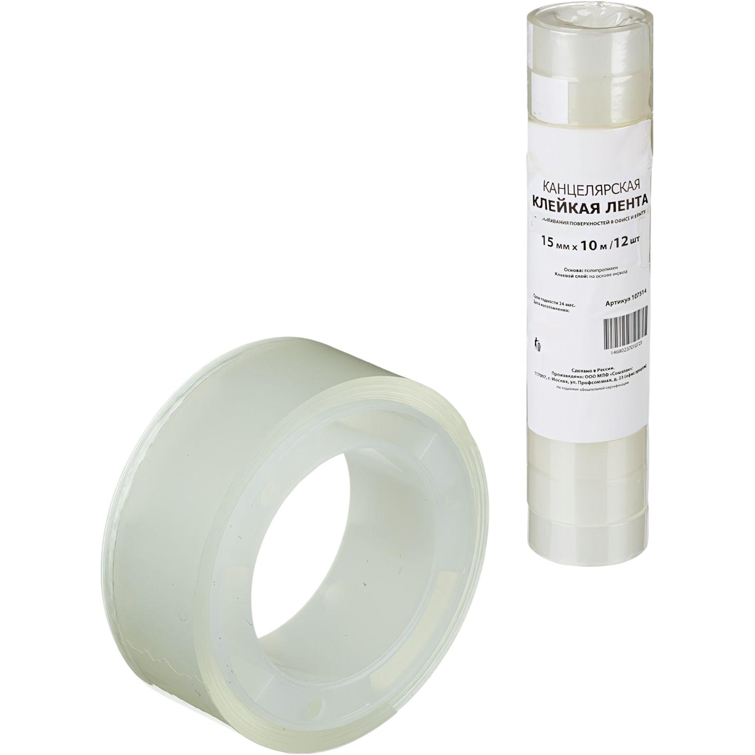 Клейкая лента канцелярская Комус прозрачная 15 мм x 10 м (12 штук в упаковке)