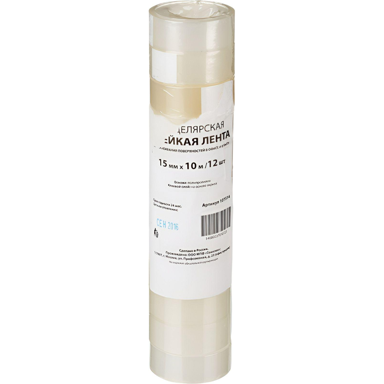 О товаре «Клейкая лента канцелярская Комус прозрачная 15 мм x 10 м (12 штук в упаковке)»