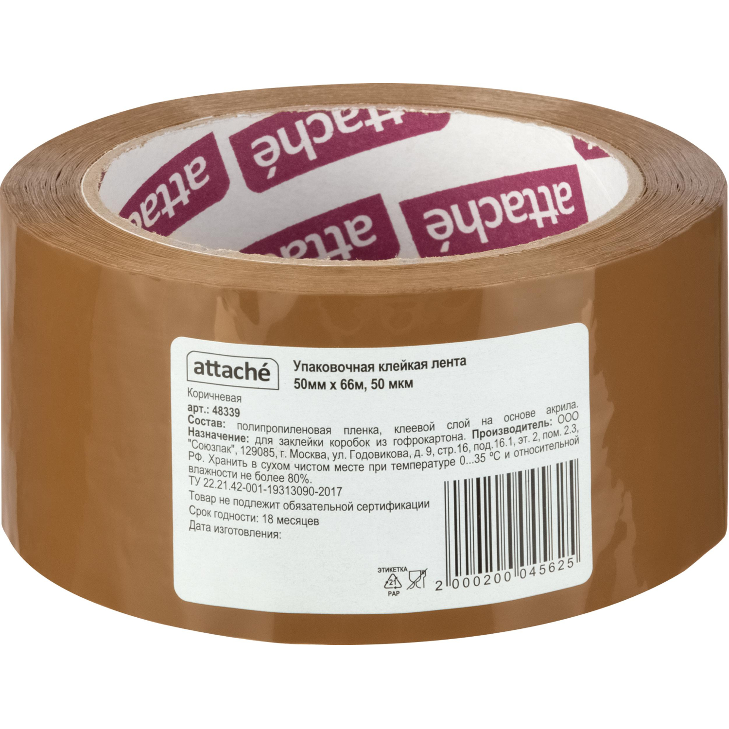 Клейкая лента упаковочная Attache 50 мм x 66 м 50 мкм коричневая (морозостойкая)