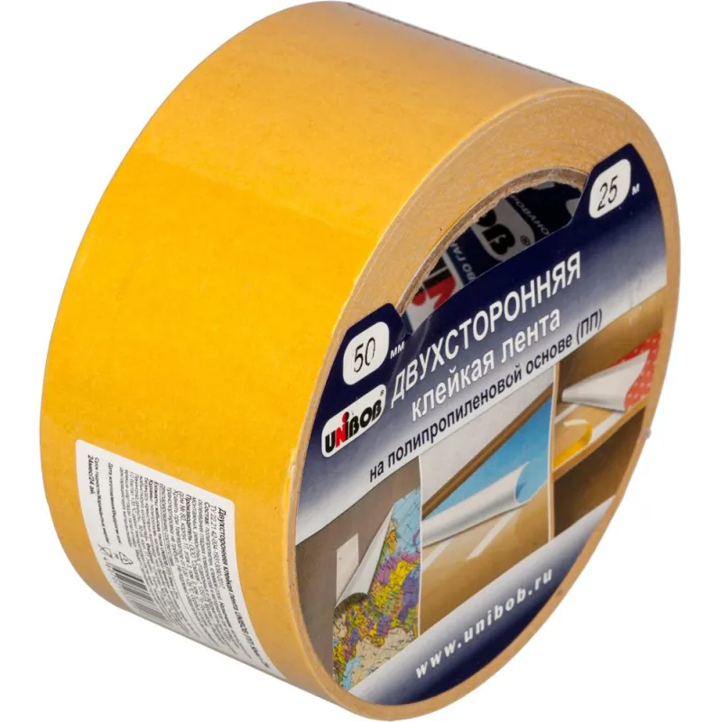 О товаре «Клейкая лента двухсторонняя монтажная белая Unibob 50 мм x 25 м»