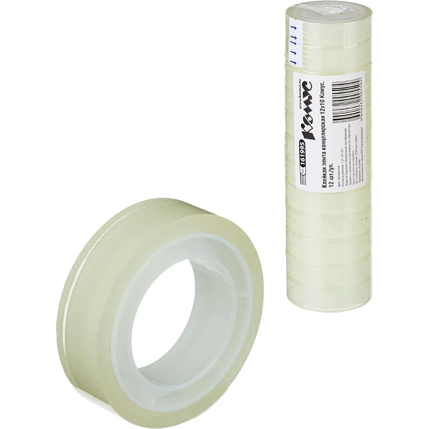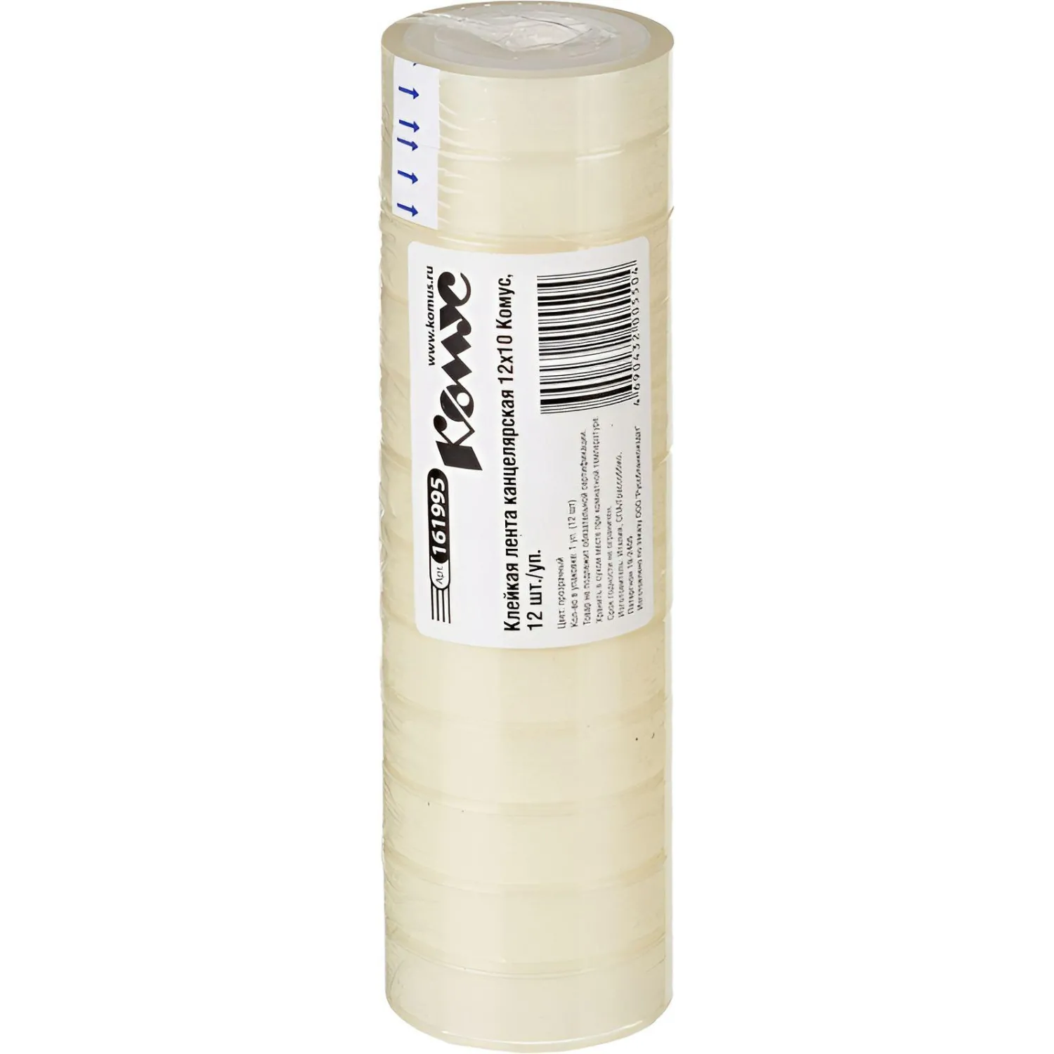 Клейкая лента канцелярская Комус прозрачная 12 мм x 10 м (12 штук в упаковке)