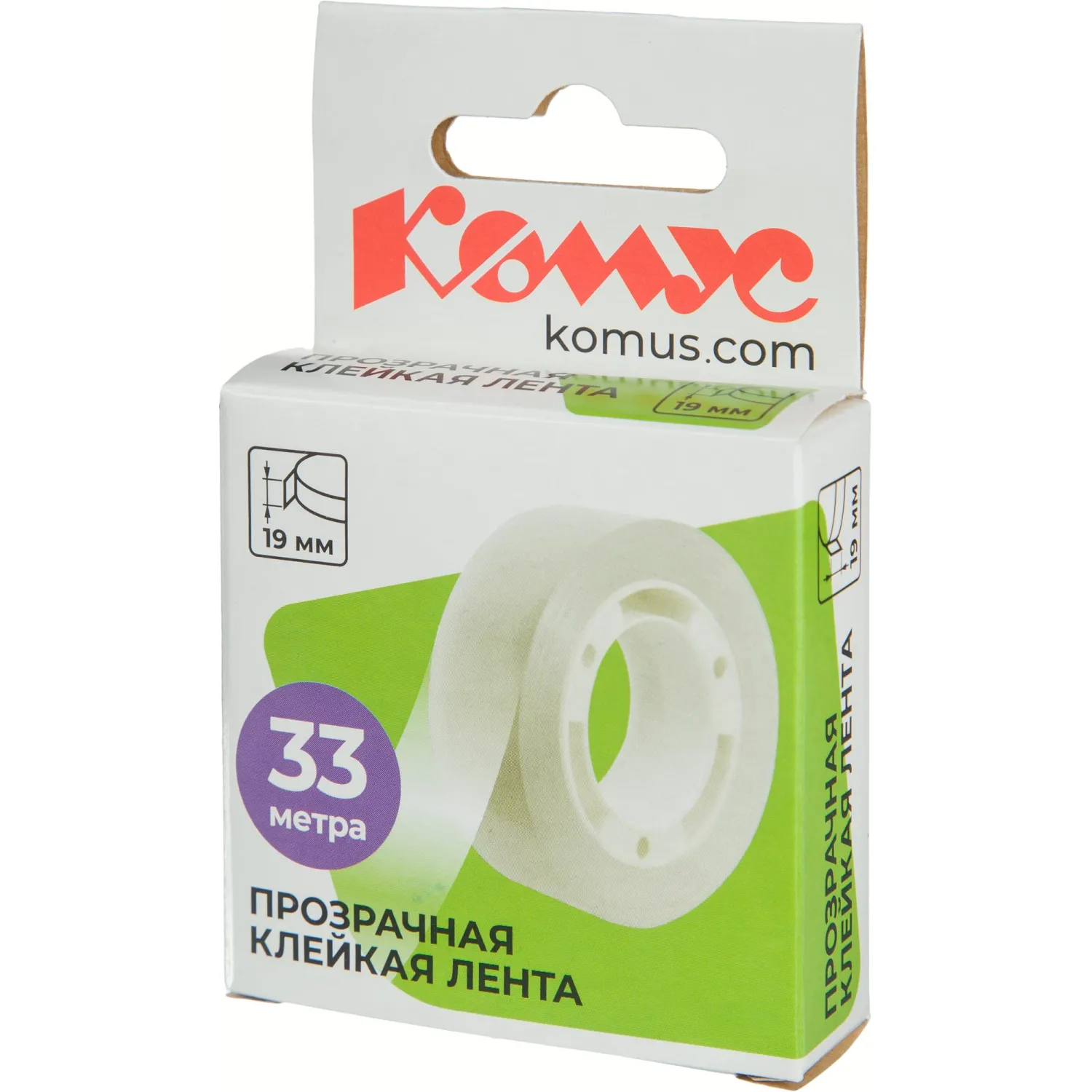 Клейкая лента канцелярская Комус прозрачная 19 мм x 33 м