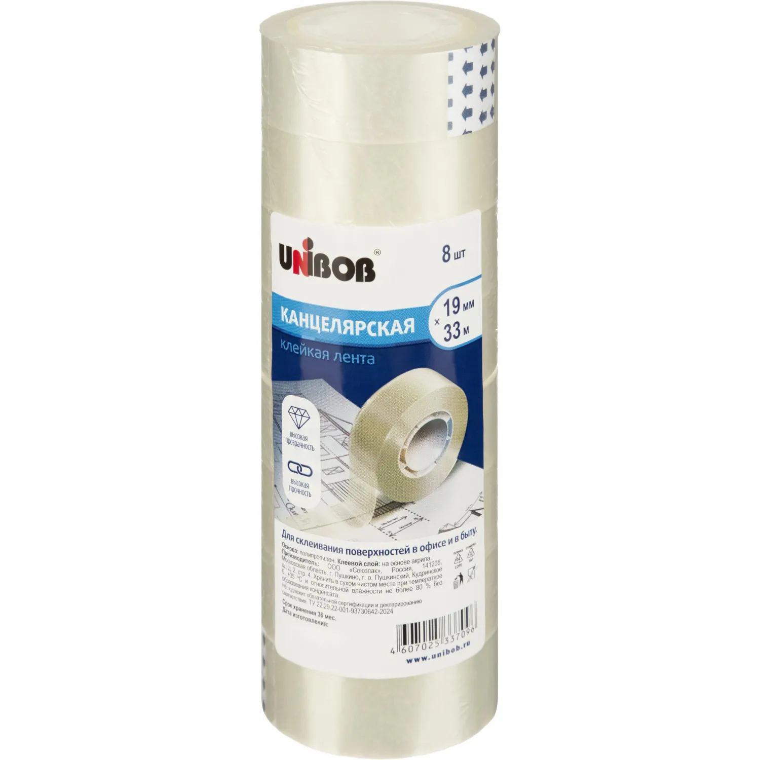 О товаре «Клейкая лента канцелярская Unibob 19x33 (8шт/уп)»