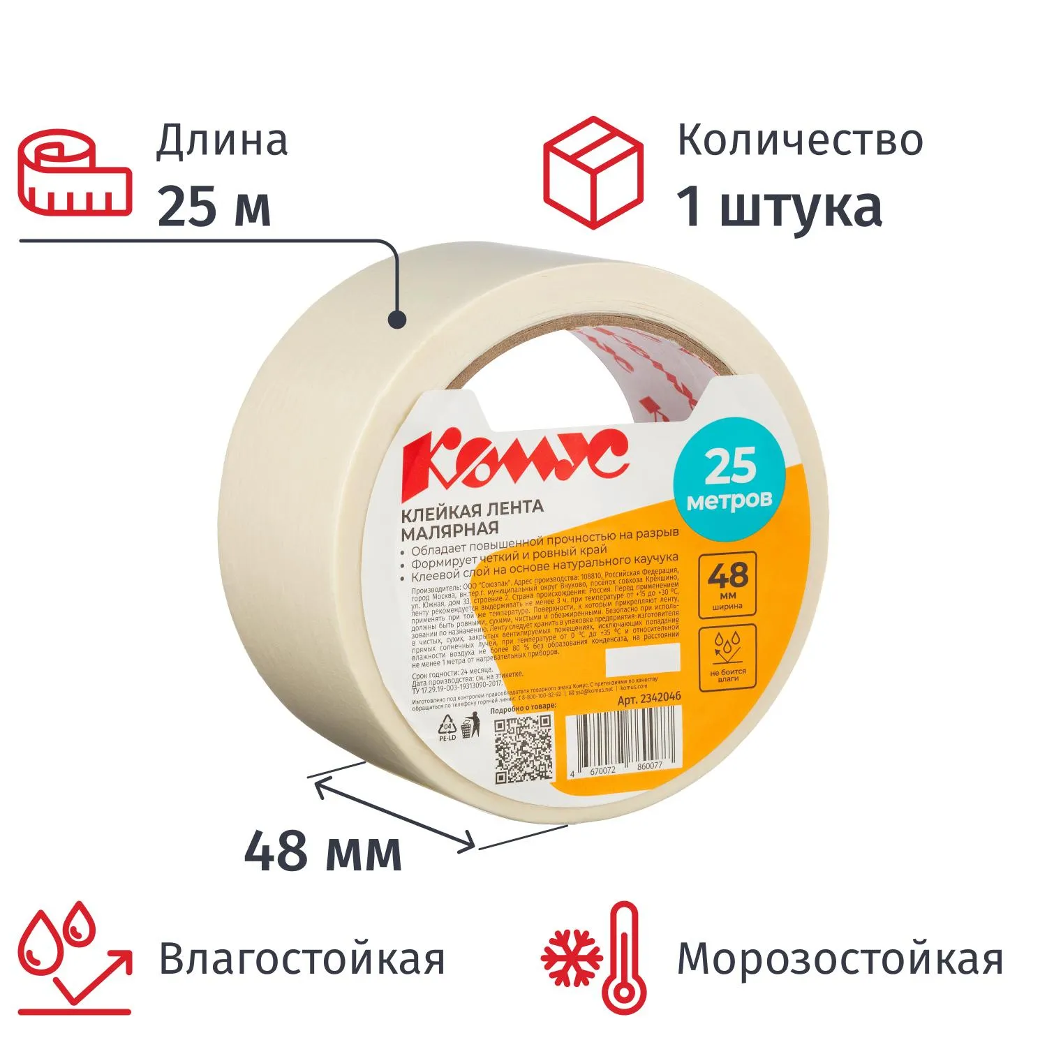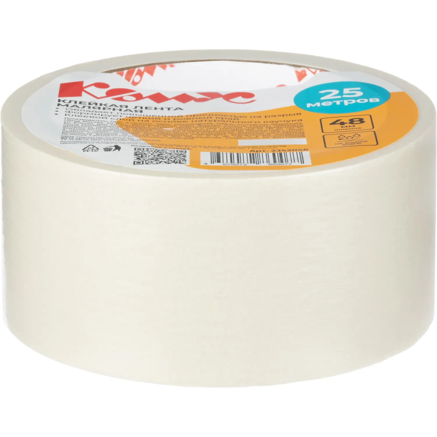 Клейкая лента малярная Комус 48 мм x 25 м влагостойкая морозостойкая белая