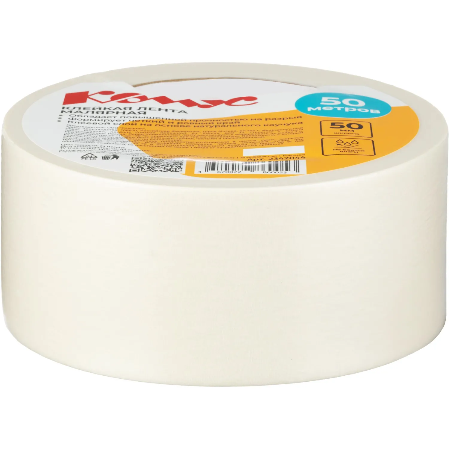 Клейкая лента малярная Комус 50 мм x 50 м влагостойкая морозостойкая белая