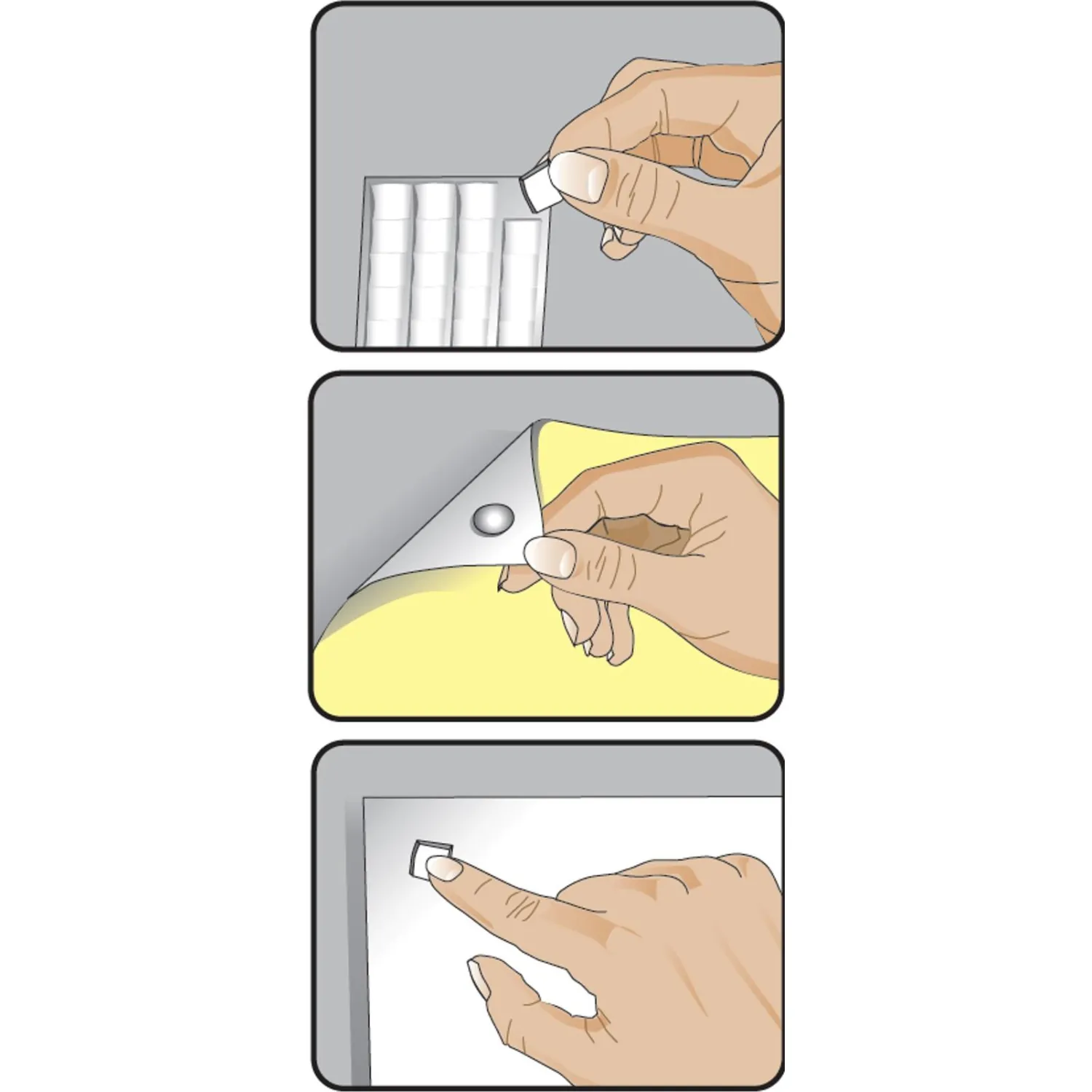 Подушечки Kores Gum fix не содержат токсичных веществ, кислот или растворителей. Они не оставляют следов после удаления со стены и подходят для многоразового использования. Позволяет крепить бумагу, картон, пластиковые изделия на непористых поверхностях. Изготовленная из полимерной смеси, каждая сторона подушечек покрыта клеем. Сначала подушечку фиксируют на стене, а затем прижимают к ней фотографию, карту, плакат или другой предмет.