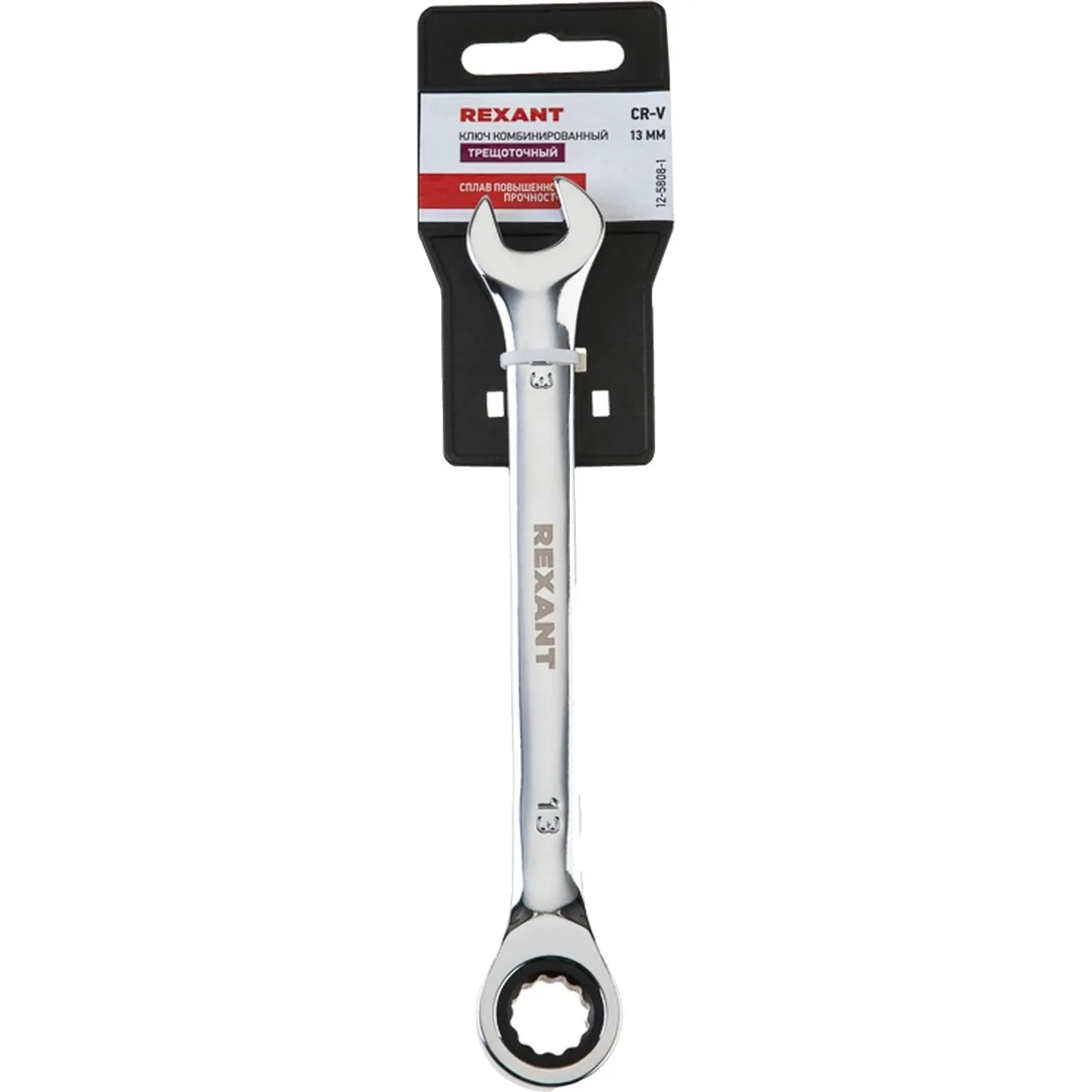 Ключ комбинированный трещоточный 13мм, CrV, зеркальн. хром REXANT 12-5808-1