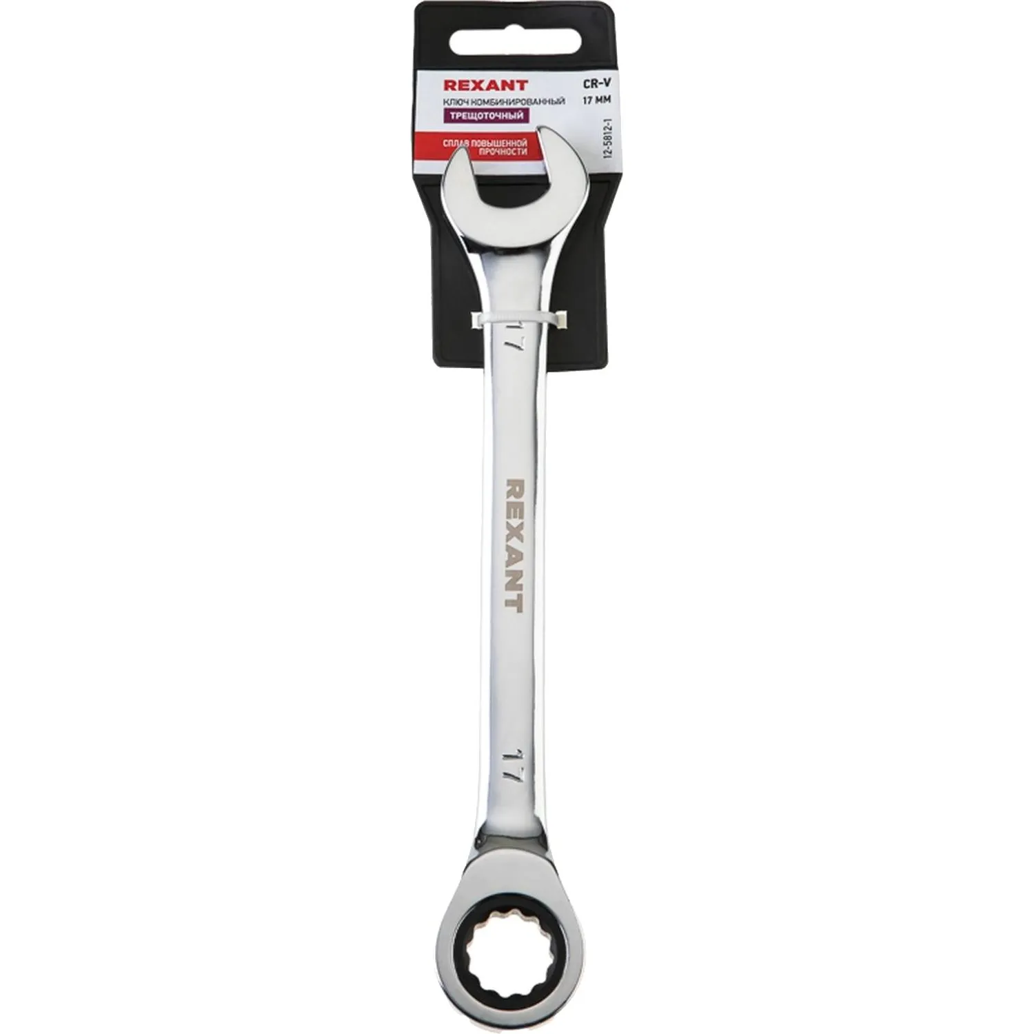 Ключ комбинированный трещоточный 17мм, CrV, зеркальн. хром REXANT 12-5812-1