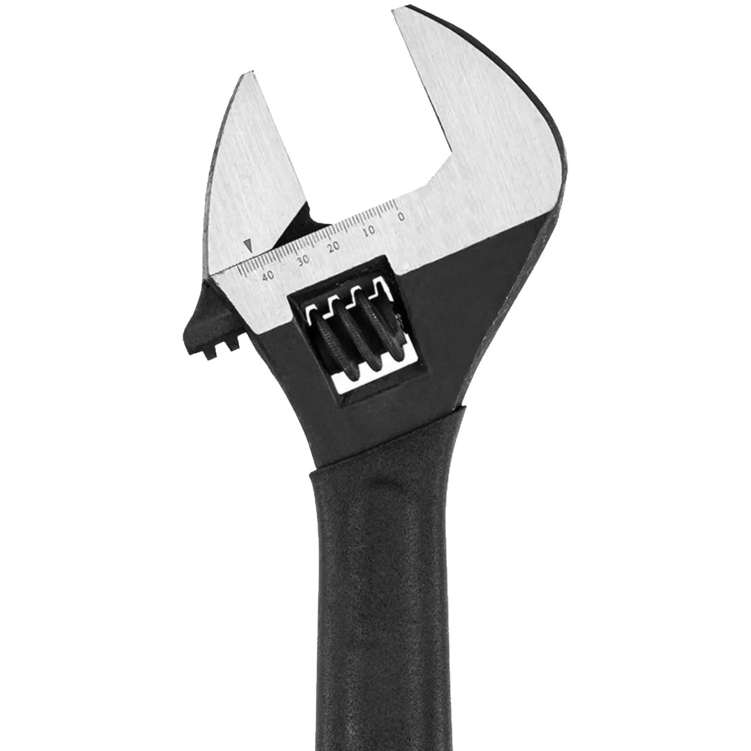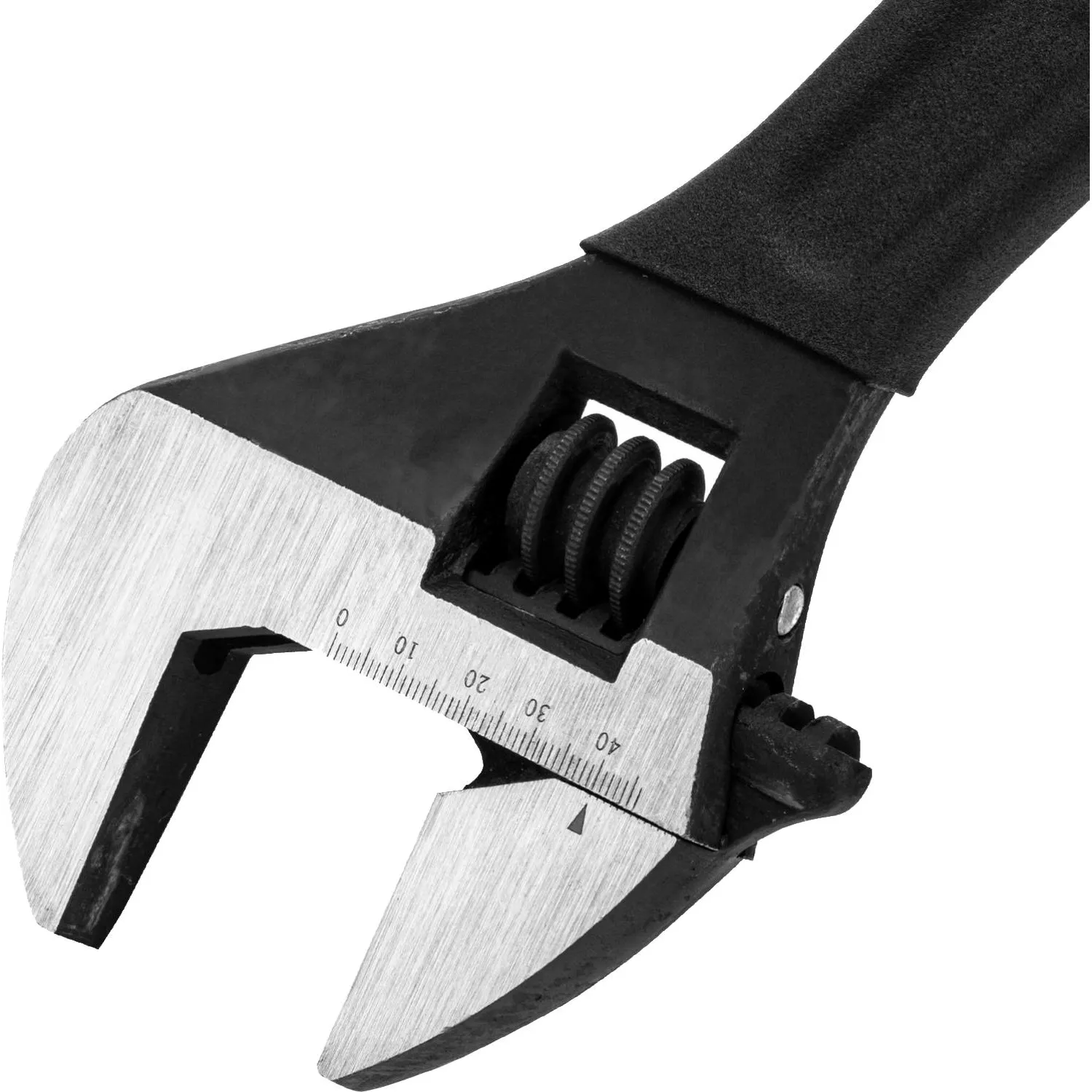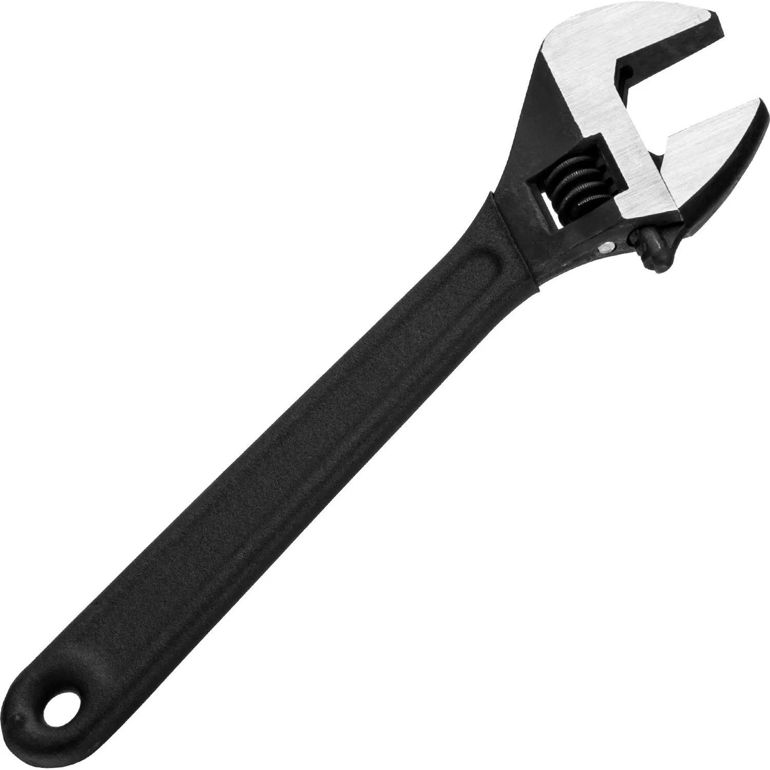 Разводной ключ используется для монтажа и демонтажа резьбовых соединений с широким диапазоном размеров крепежа. Изготовлен из углеродистой стали с селективной закалкой. На неподвижной губке нанесена градуировка, на подвижной — точечная риска.