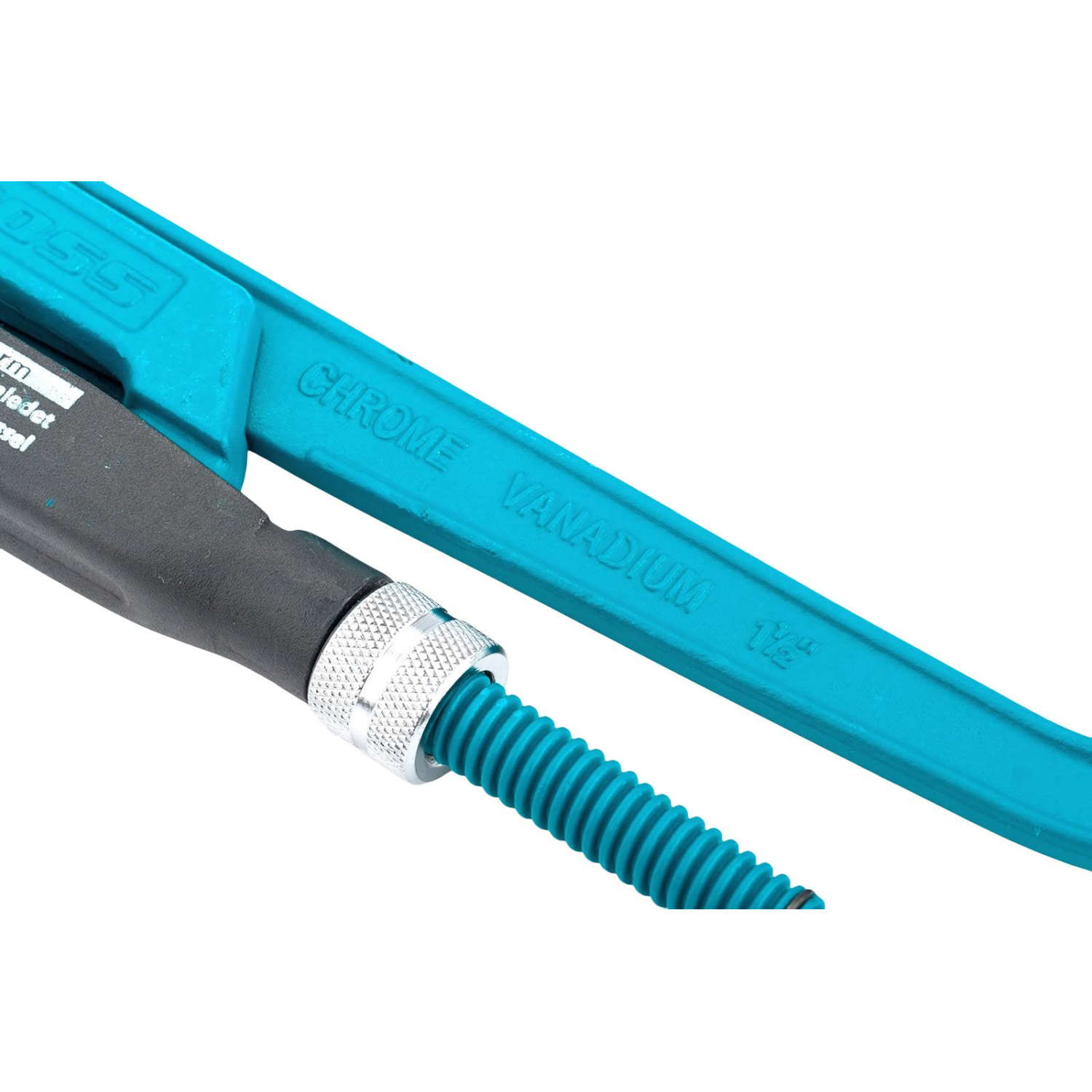 Ключ трубный рычажный типа S усиленной конструкции, применяется при повышенных нагрузках. Предназначен для захватывания и вращения труб и соединительных частей трубопроводов. Изготовлен из высококачественной хромованадиевой стали. Имеет порошковое антикоррозийное покрытие. Прогрессивная форма зуба с наклоном против направления вращения обеспечивает самоблокируемый захват деталей. Верхняя ручка имеет выштампованный