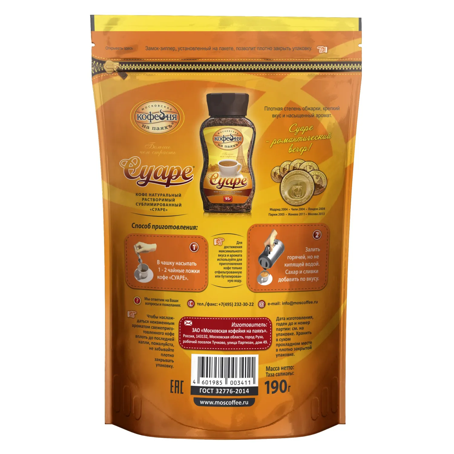 Кофе растворимый сублимированный Московская кофейня на паяхъ Суаре 190 г (пакет)