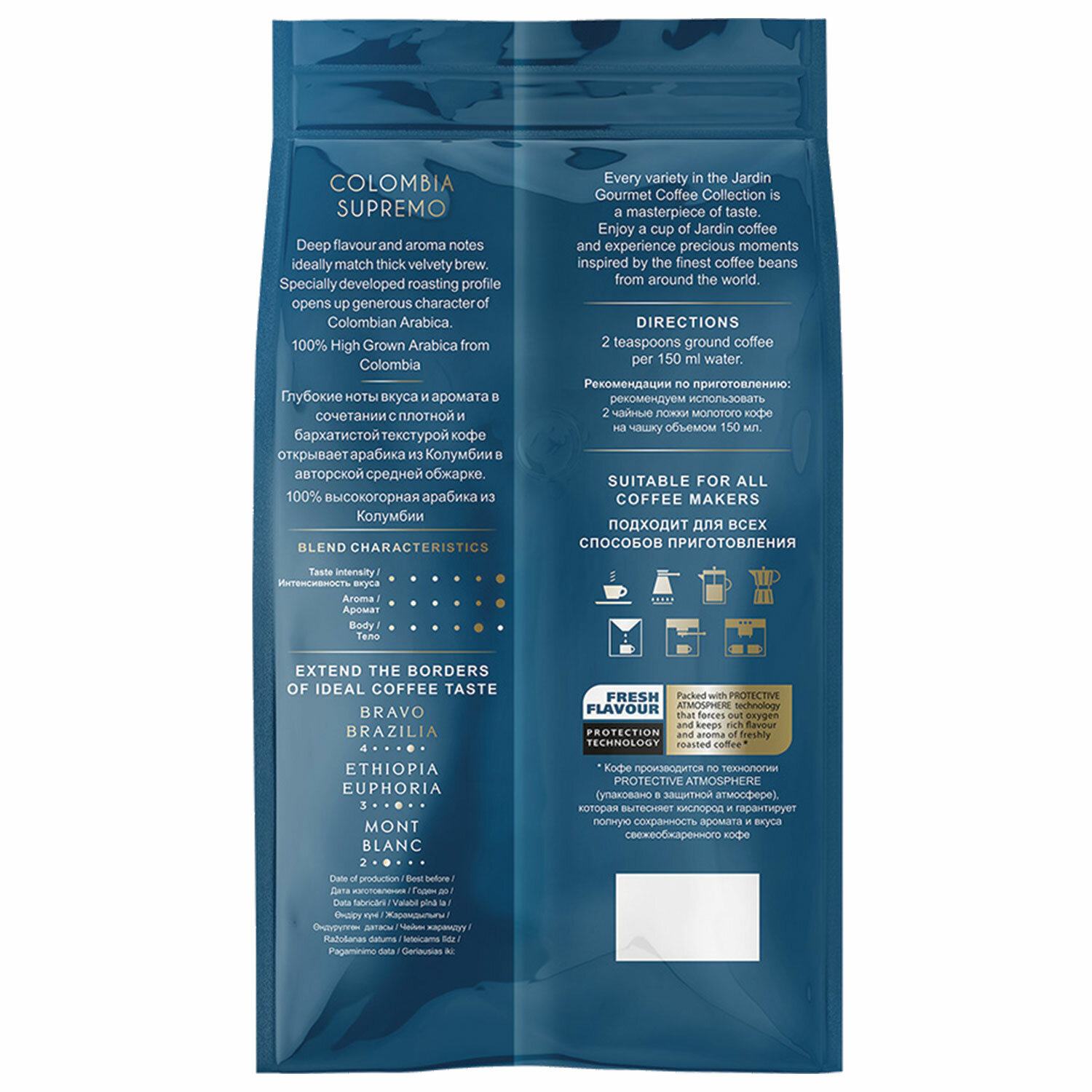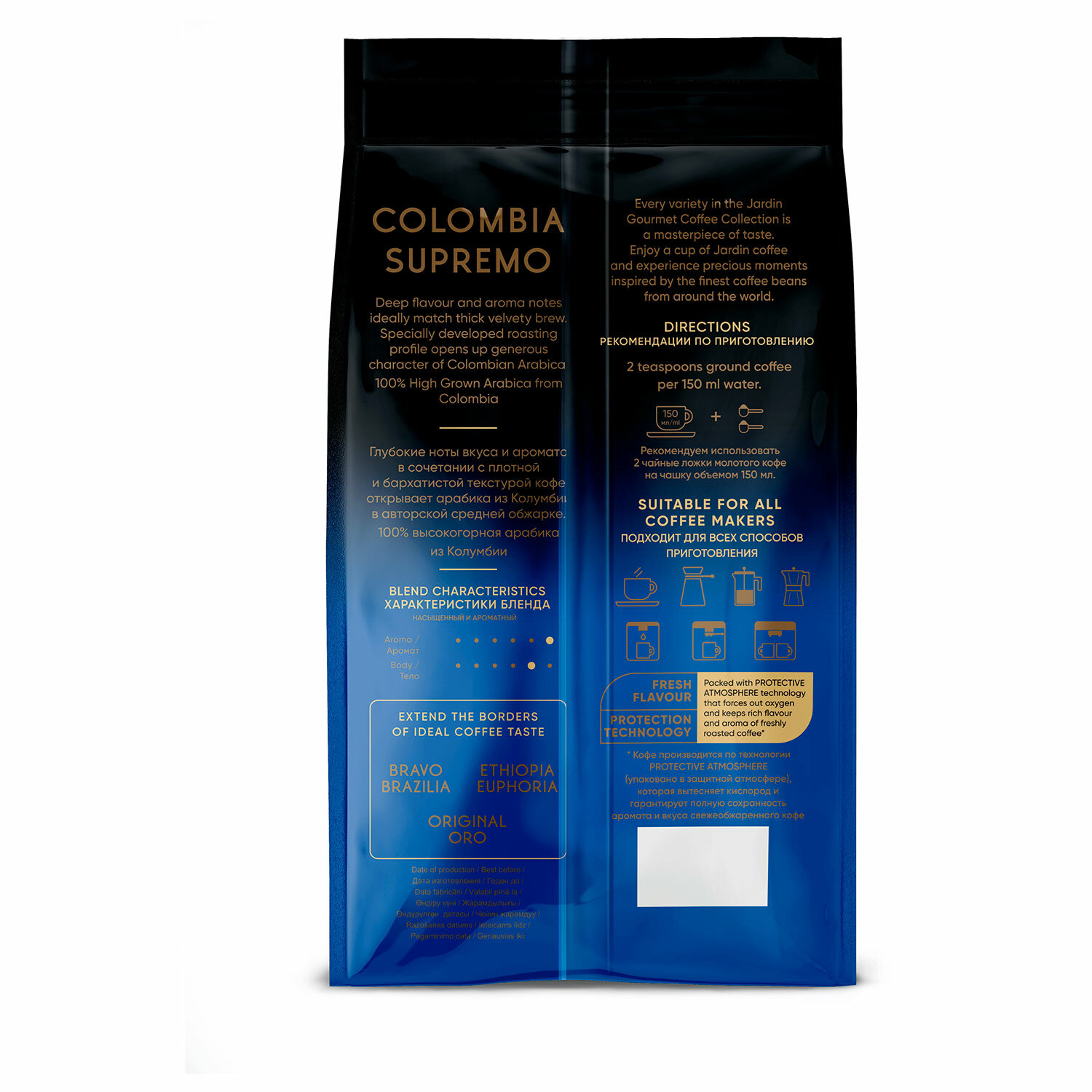 Jardin Colombia Supremo принадлежит к премиум-сегменту благодаря высококачественному сырью и авторской обжарке. Стандарт: ГОСТ Р 51881.