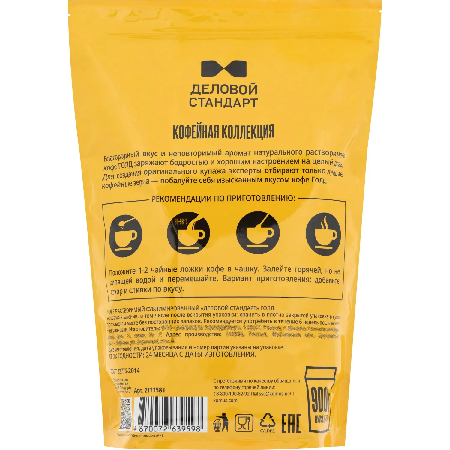 О товаре «Кофе Деловой стандарт растворимый дой-пак, 900г»