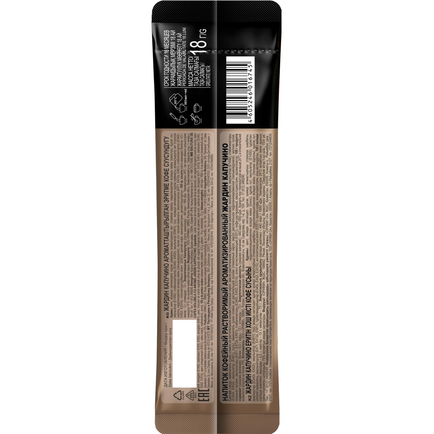 О товаре «Кофе порционный растворимый Jardin 3 в 1 Cappuccino 8 пакетиков по 18 г»