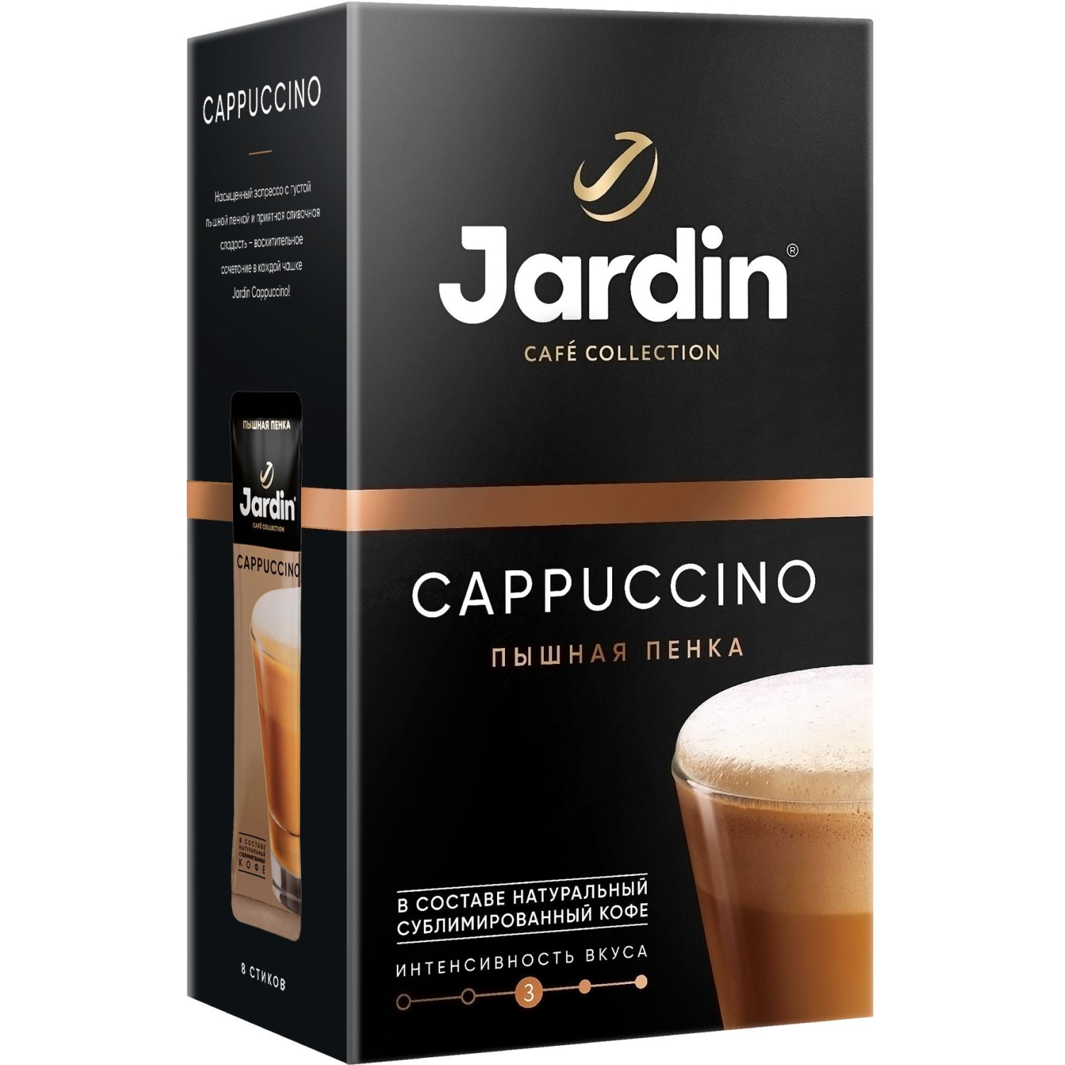 Густая пышная пенка, легкий вкус карамели, эспрессо — восхитительное сочетание в одной чашке Jardin Cappuccino!