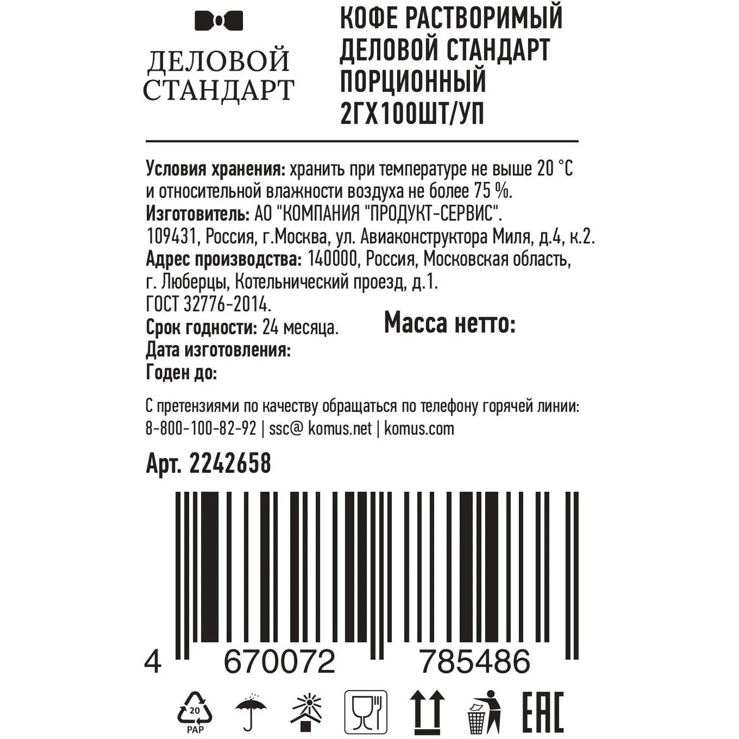 О товаре «Кофе порционный растворимый Деловой Стандарт (100 пакетиков по 2 г)»