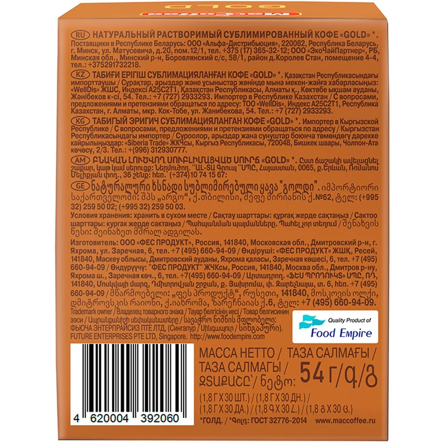 О товаре «Кофе растворимый MacCoffee Gold, сублимированный 1,8гx30шт/уп»