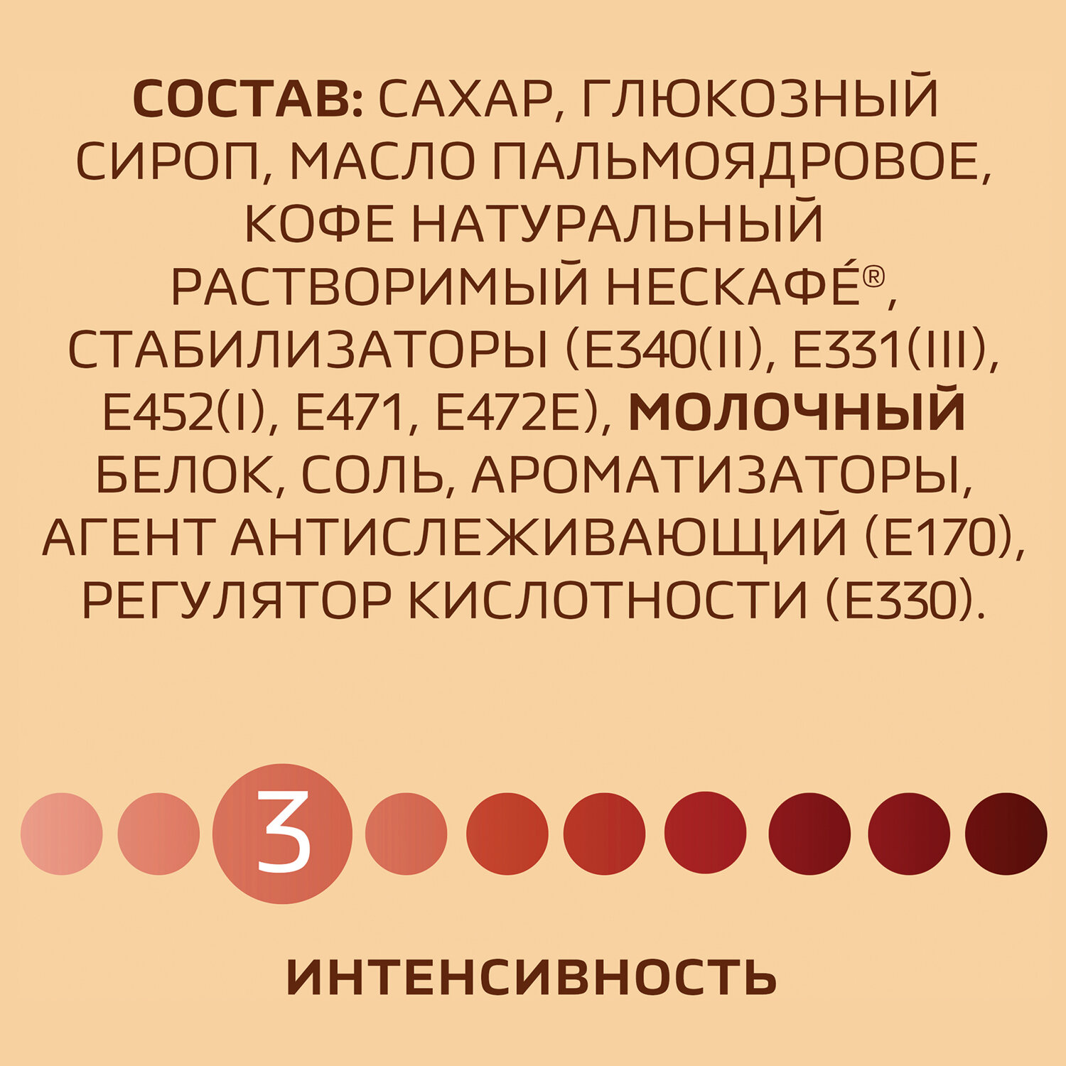 Кофейный растворимый напиток создан для того, чтобы вы могли в любых условиях насладиться насыщенным кофейно-сливочным вкусом. В его составе высококачественные ингредиенты: растворимый кофе NESCAFE, сахар и сливки растительного происхождения