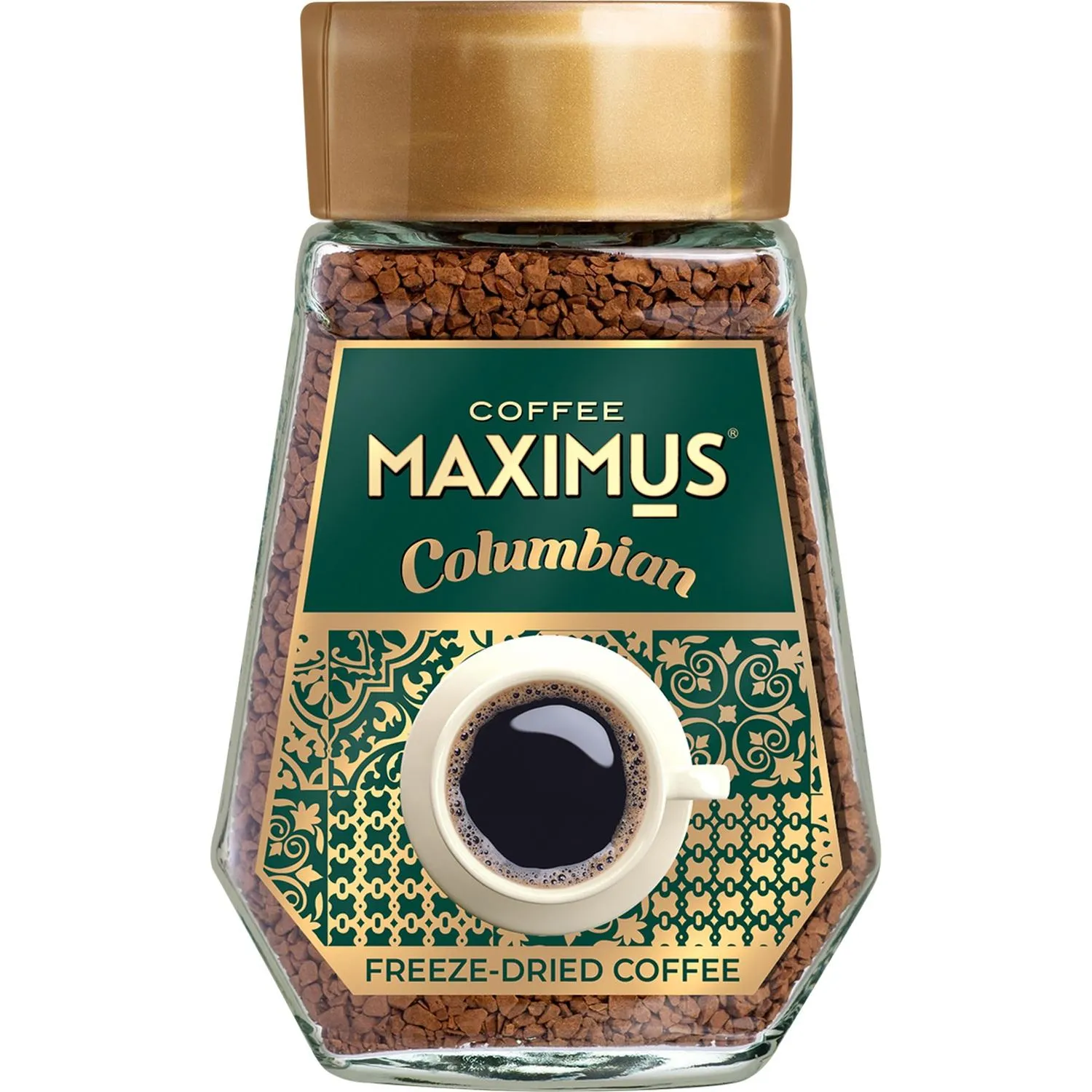 1) натуральный растворимый сублимированный кофе Columbian ТМ «Maximus» в стеклянной банке, 95 г — 1 шт.
