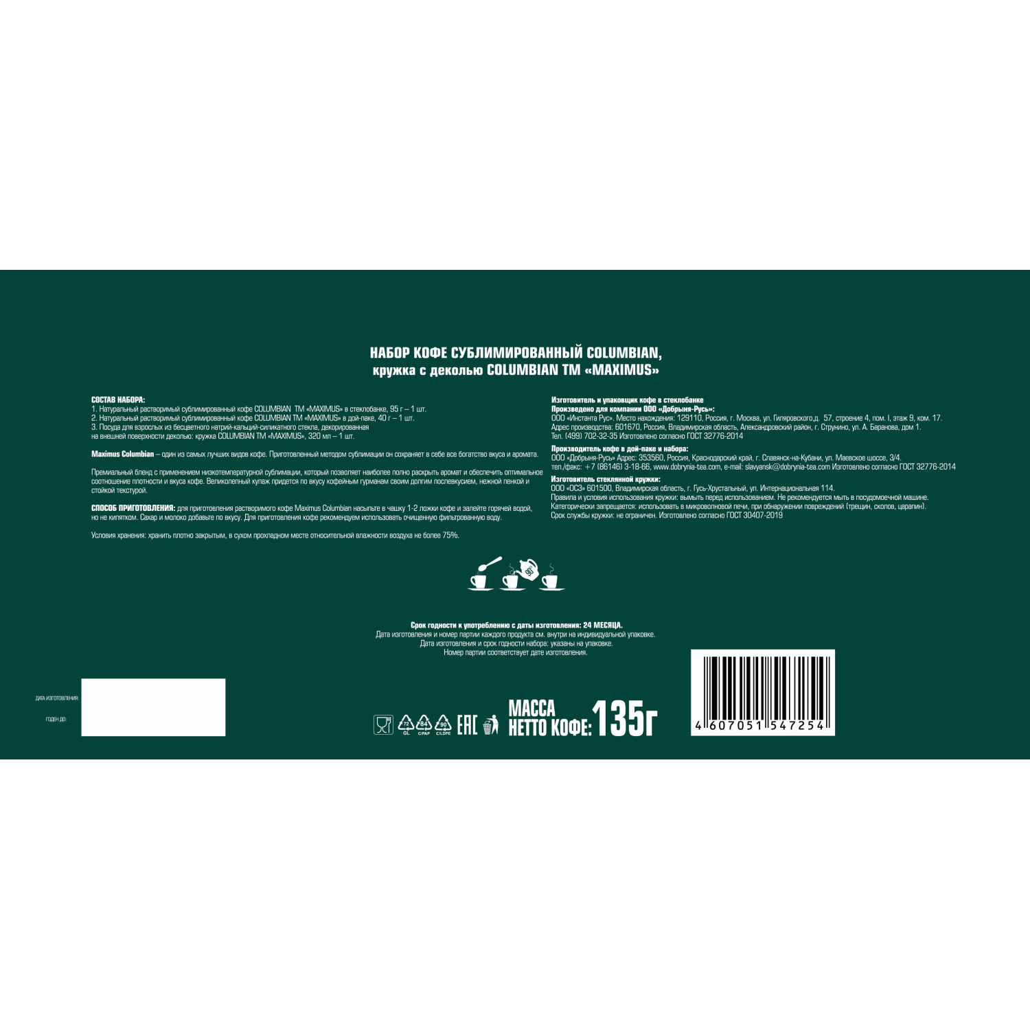 Кофе растворимый сублимированный Maximus Columbian с кружкой 135 г (картонная коробка)