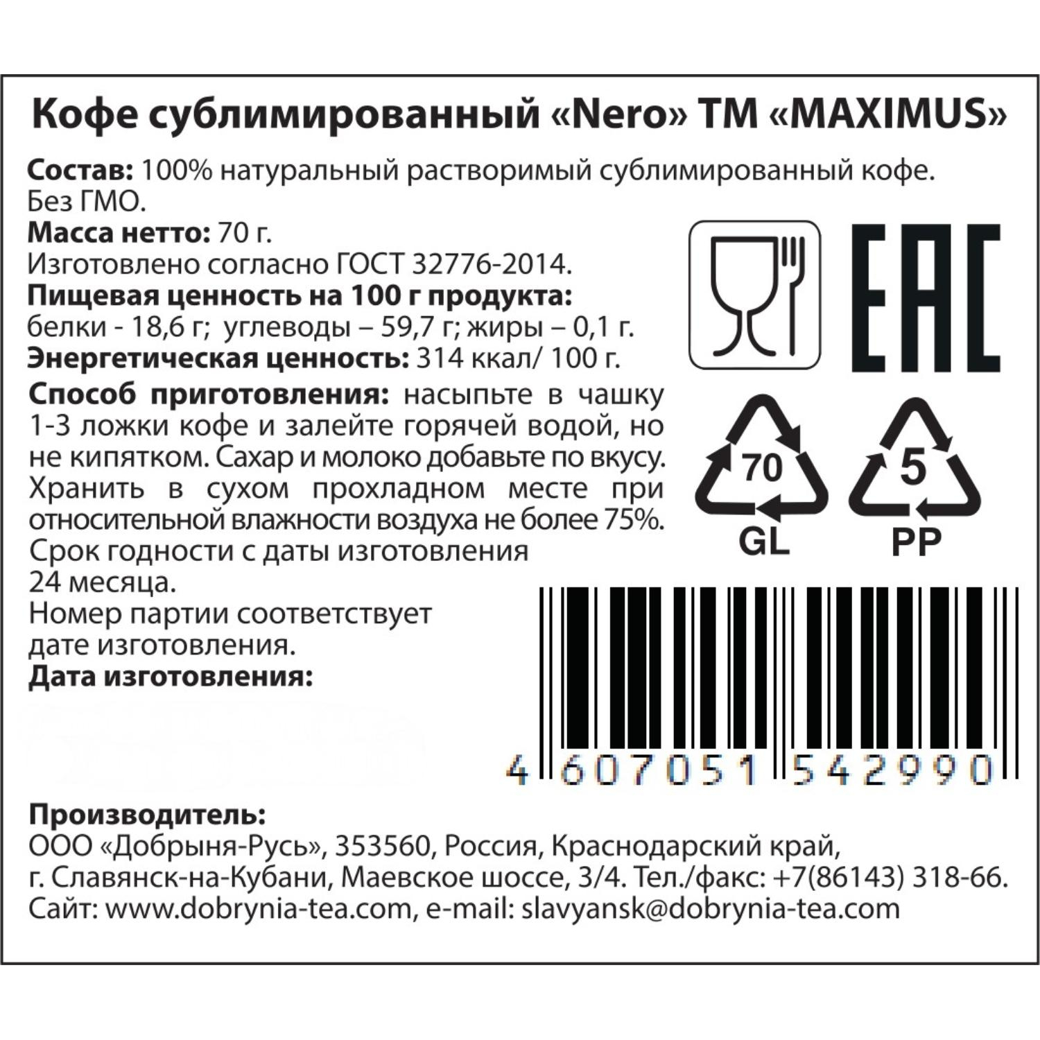О товаре «Кофе сублимированный Maximus NERO в стеклянной кружке 70г»