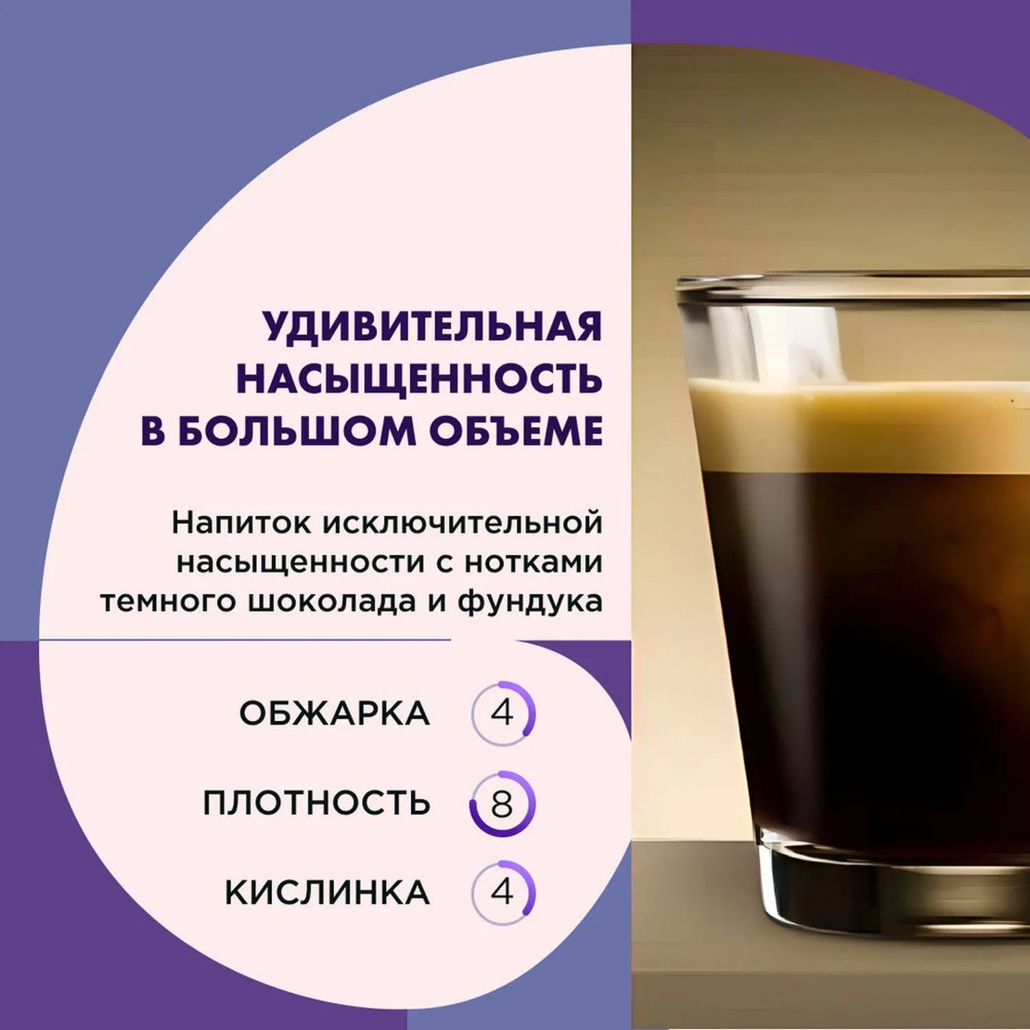 Lungo или 'долгий эспрессо' — напиток с исключительной насыщенностью благодаря специально подобранному сорту кофейного зерна. А также в капсуле больше молотого кофе для большого объема чашки. Приготовьте плотный напиток с легкой горчинкой и мягкой кислинкой для неспешного наслаждения! Coffesso — это та Италия, где вкус и искусство встречаются вместе.