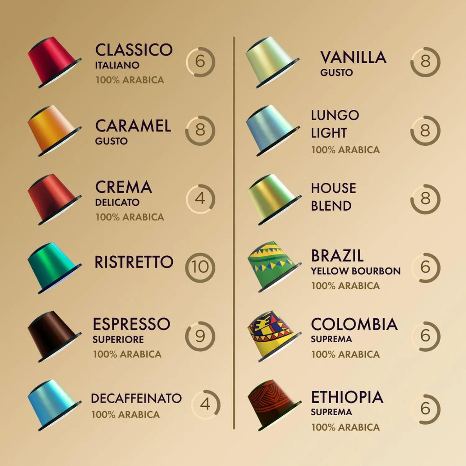 Рекомендуемый объем чашки: для лунго 110 мл. Вес кофе в одной капсуле: 5,6 г.