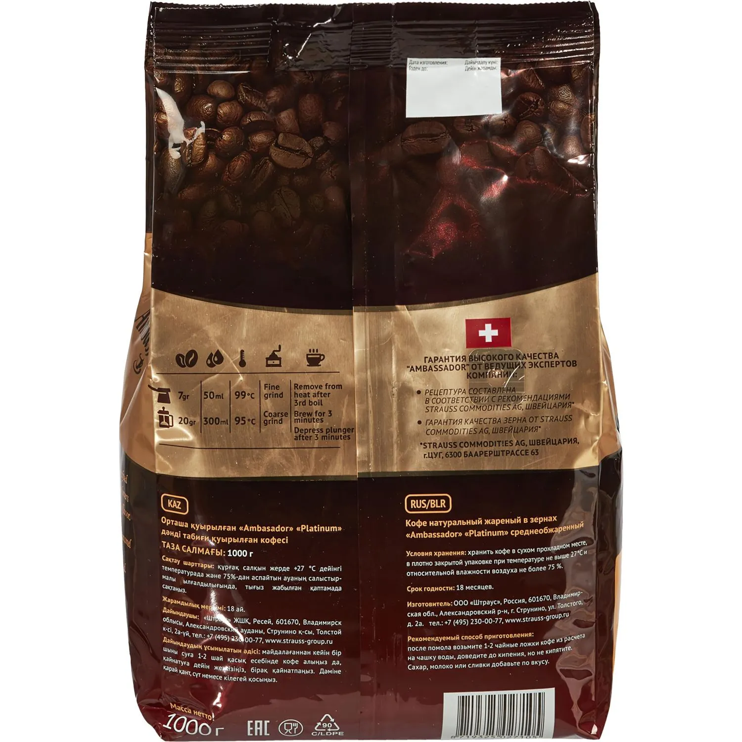 Кофе в зернах Ambassador Platinum 1 кг (пакет)