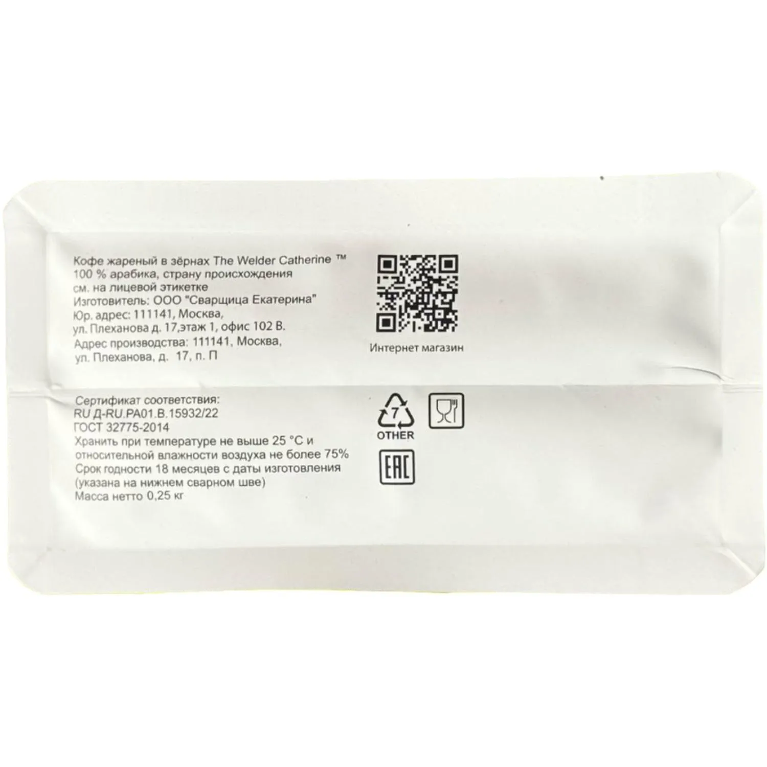 О товаре «Кофе в зернах The Welder Catherine Колумбия под молочко, 250г»