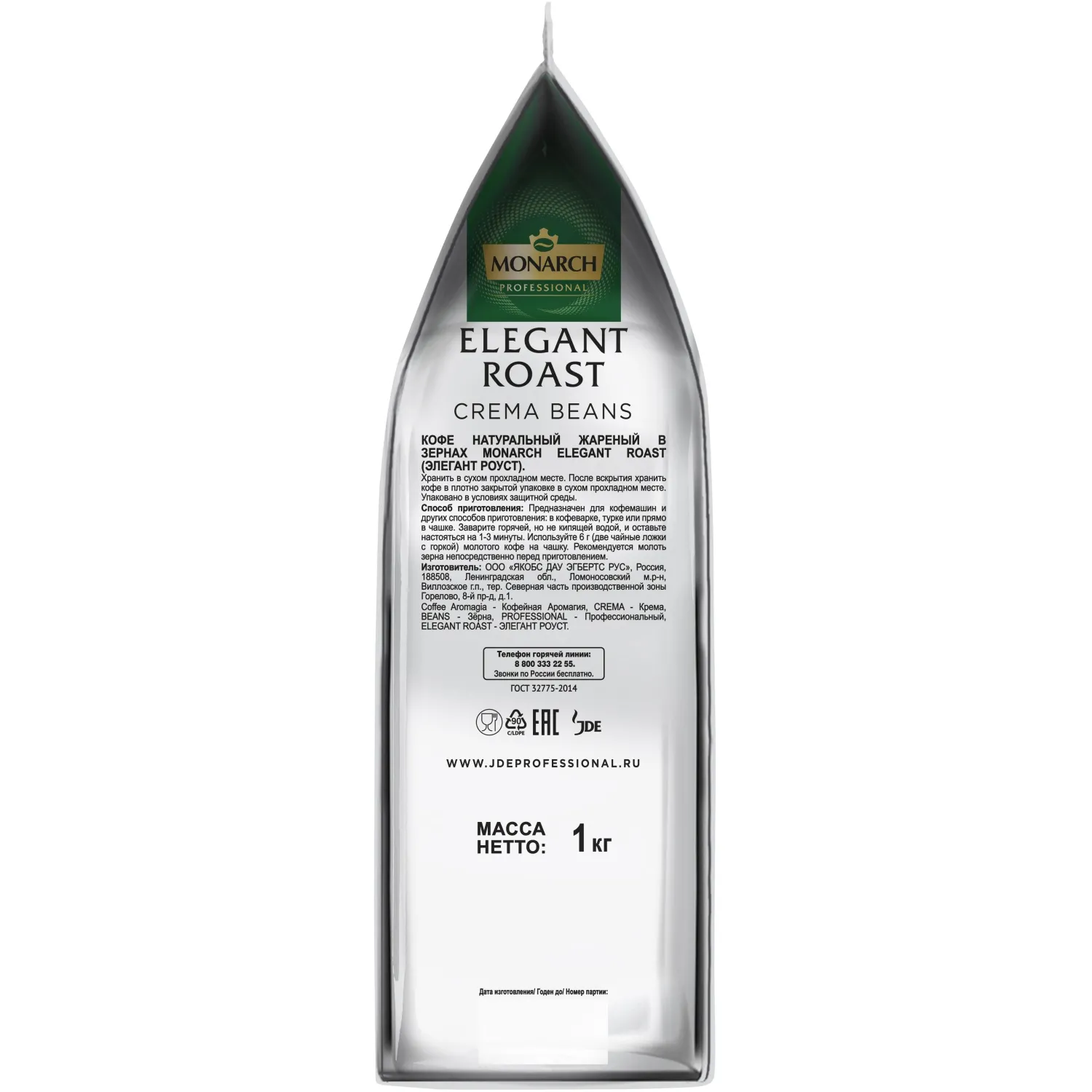 О товаре «Кофе в зёрнах Monarch Elegant Roast натуральный жареный 1кг»