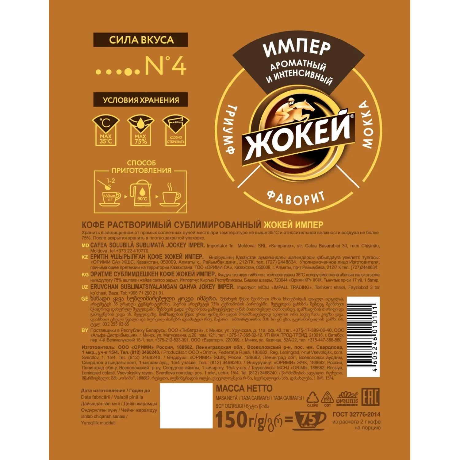 О товаре «Кофе растворимый сублимированный Жокей Импер 150 г (пакет)»