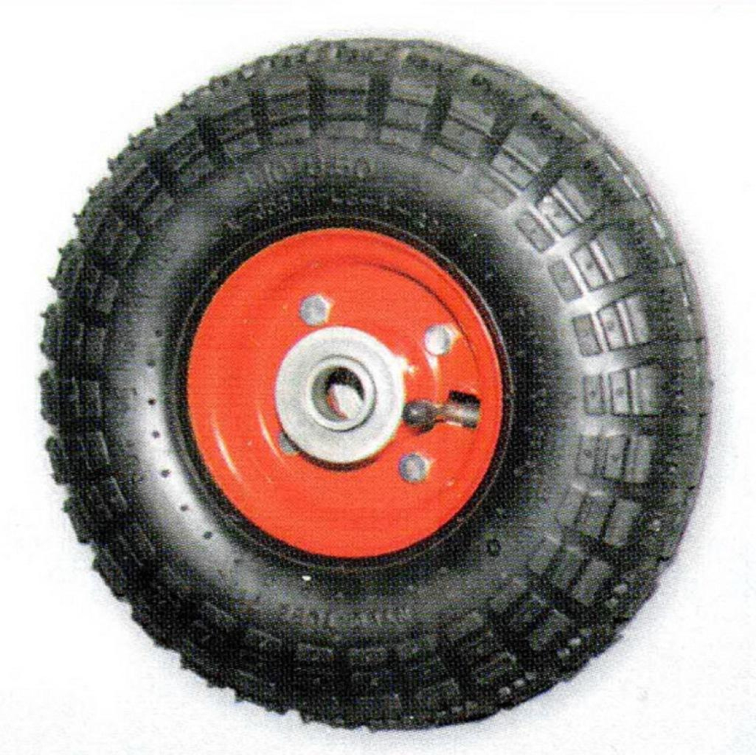Колесо пневматическое для тележек состоит из литой черной резины, обода из штампованной листовой стали и двухрядного шарикового подшипника. Главным преимуществом этих колес выступает их способность легко перемещаться по неровным поверхностям.