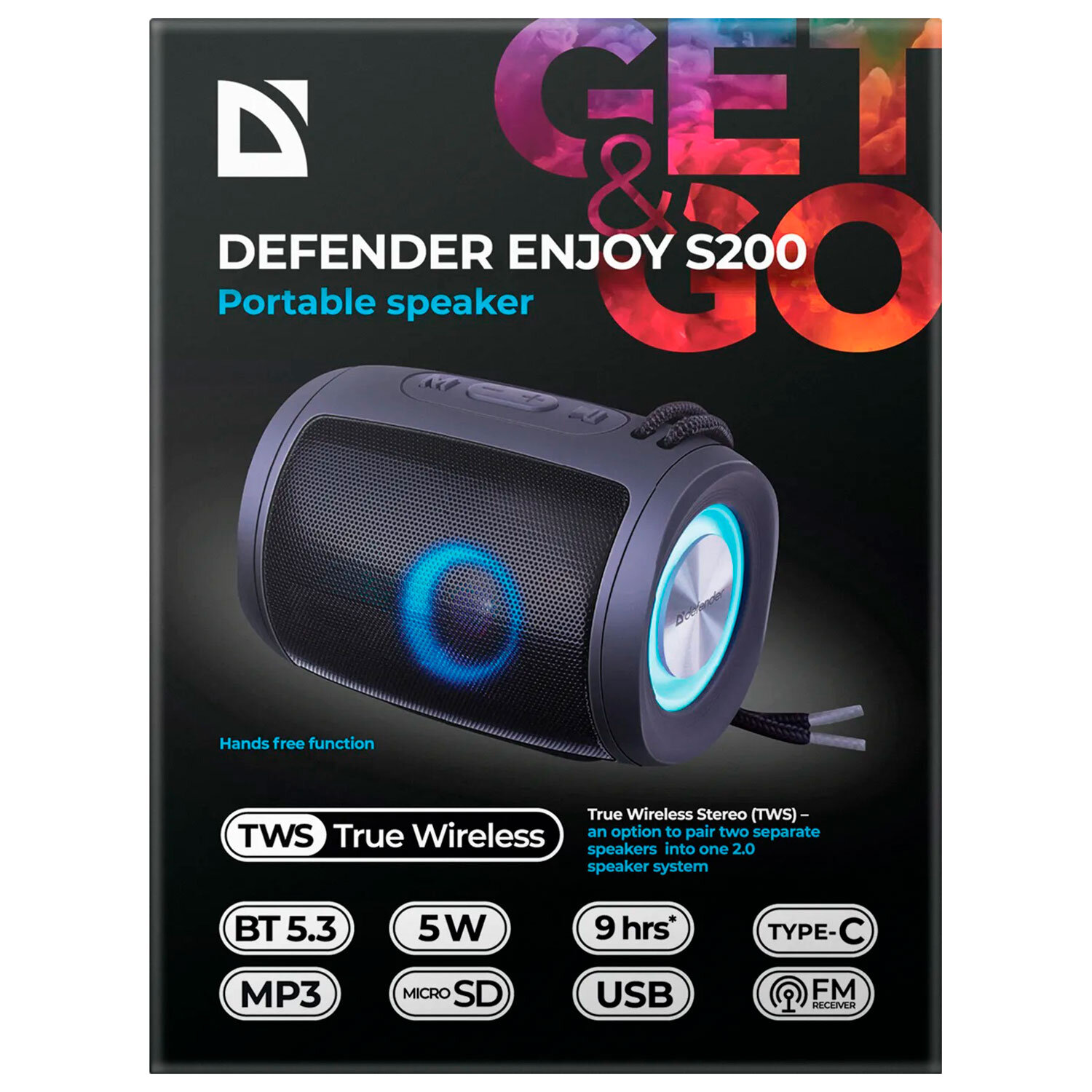 Колонка портативная DEFENDER Enjoy S200, 2.0, 5 Вт, Bluetooth, FM-тюнер, USB, microSD, 1200 мАч, 65200