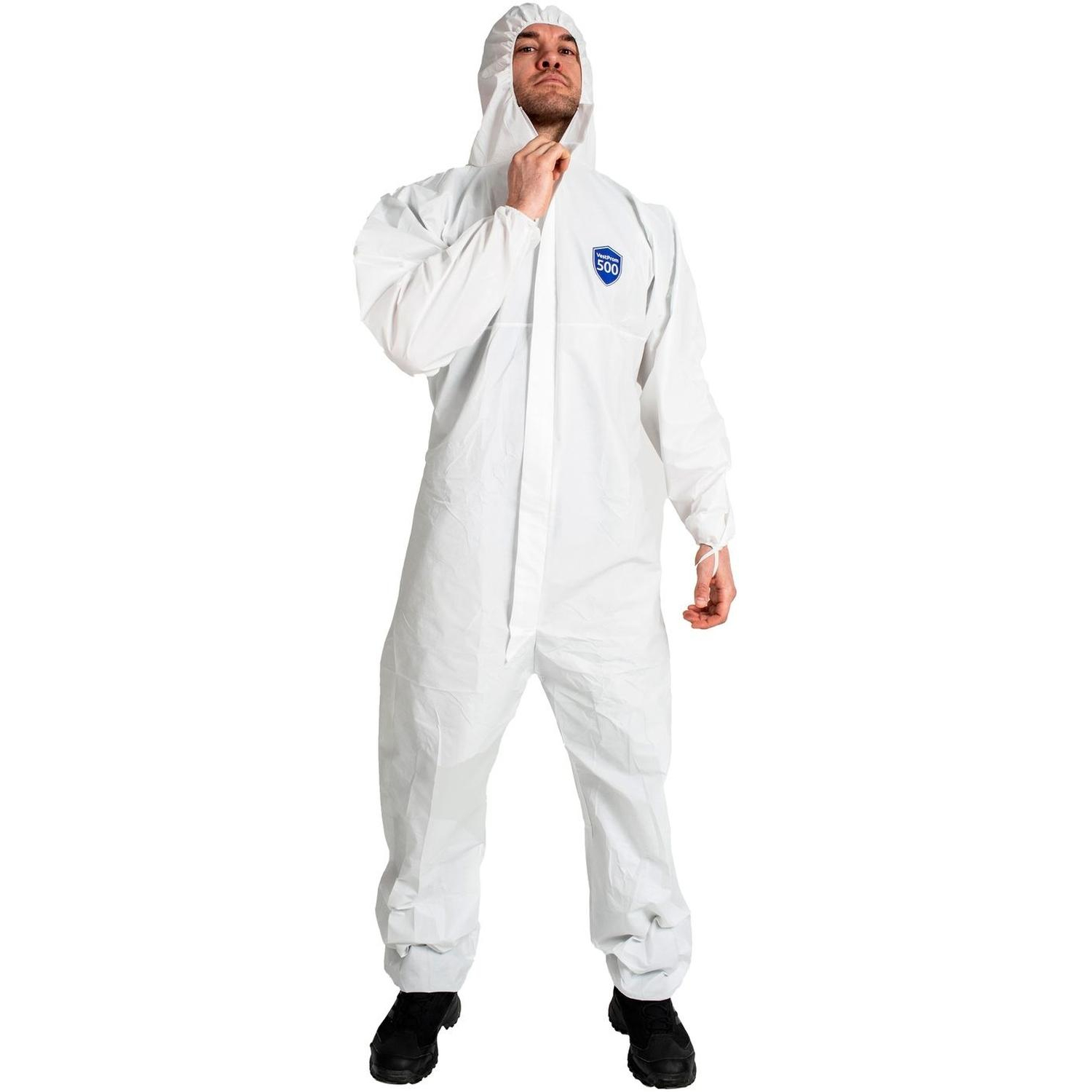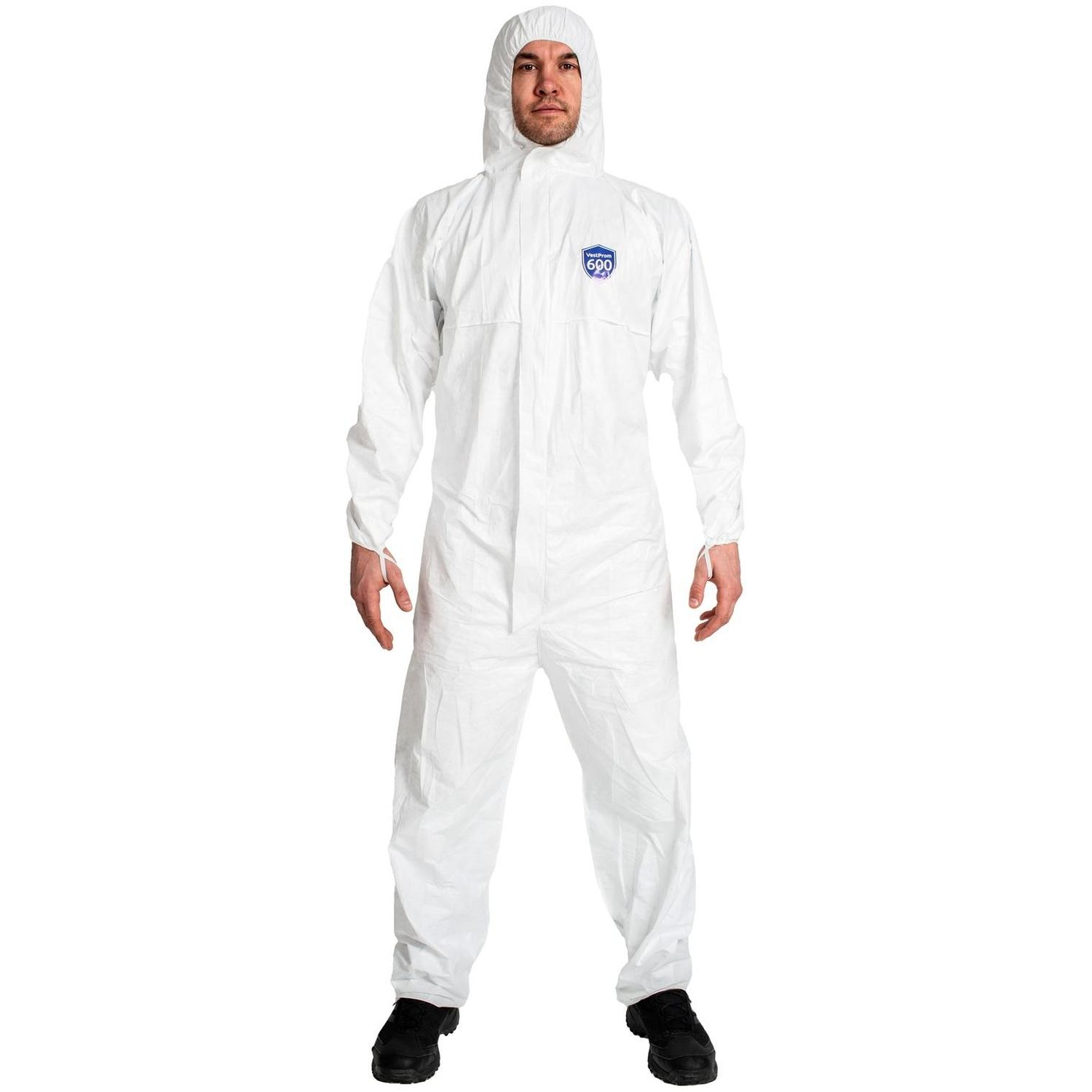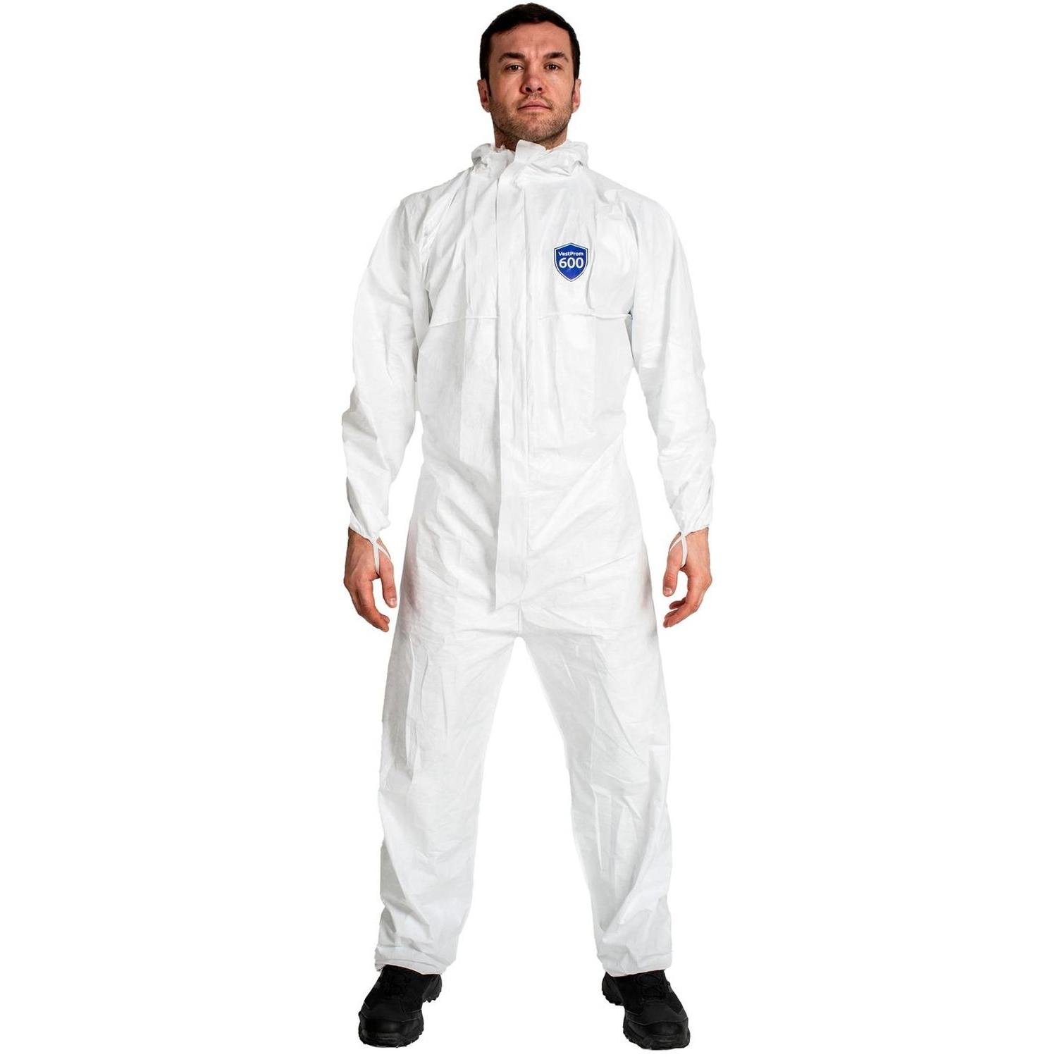 Комбинезон ограниченного срока пользования VestProm 600, белого цвета, с капюшоном, на молнии. Размер XXL, рост 186-194 см, подходит для мужчин и женщин.