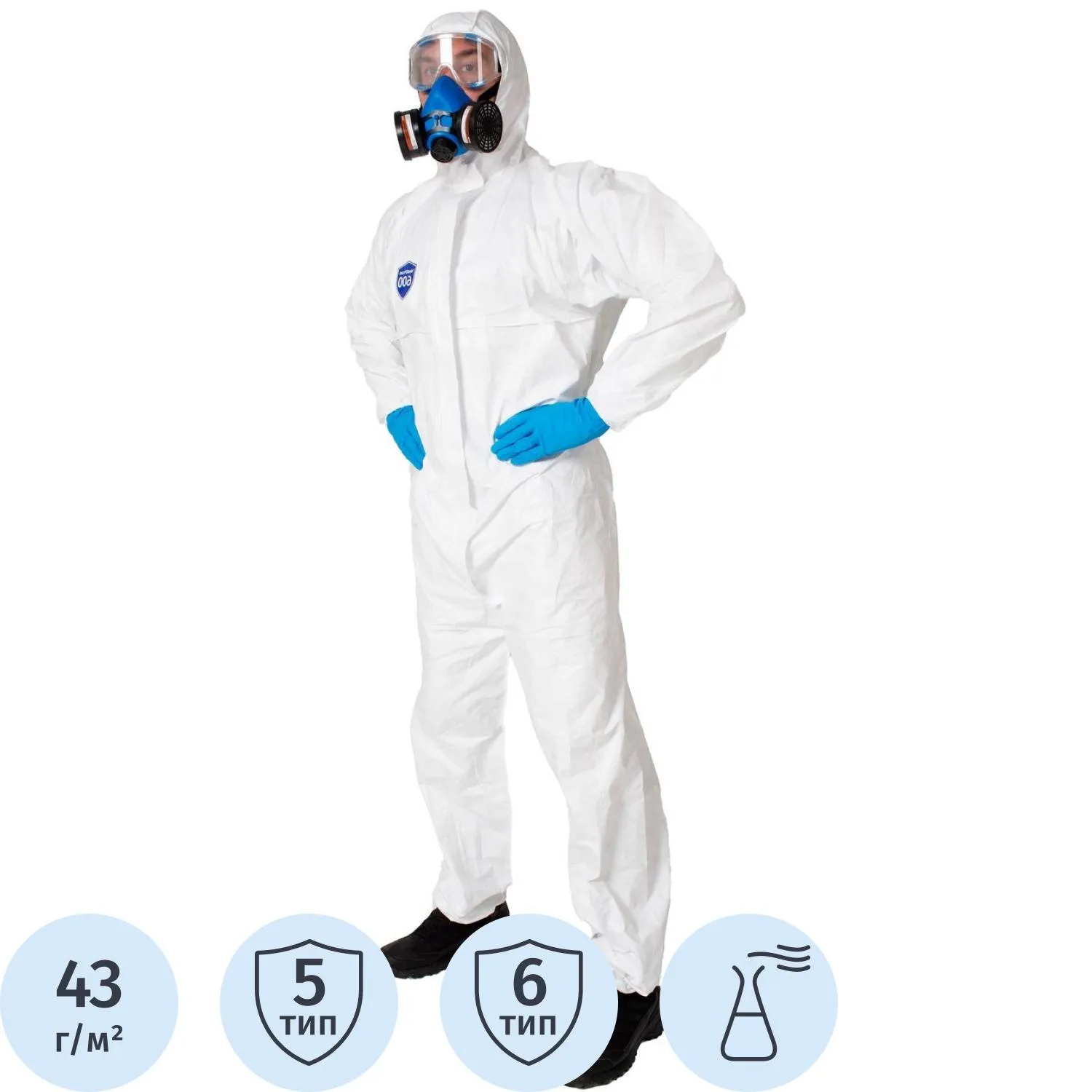 Комбинезон одноразовый с капюшоном VestProm 600 белый 43 г/кв.м (размер XL)
