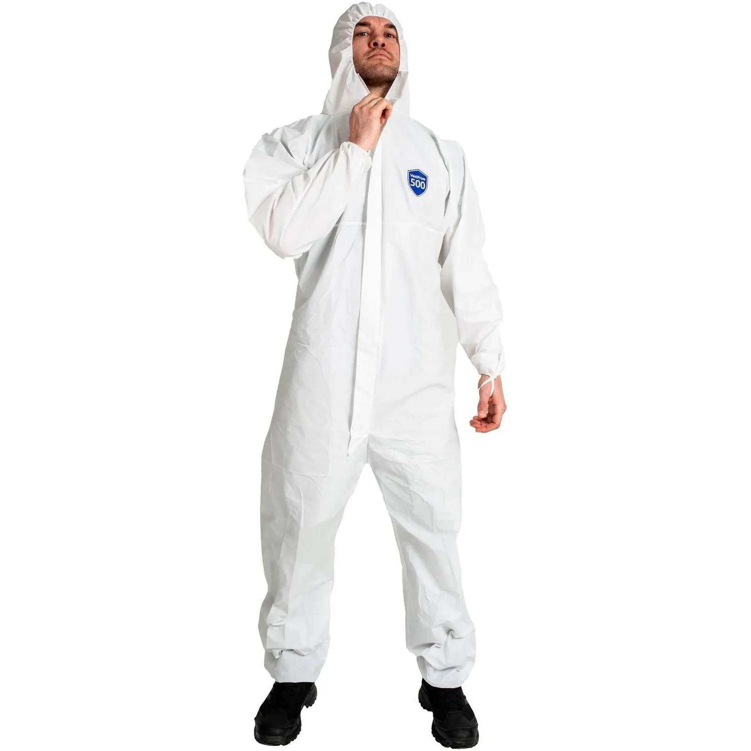 Комбинезон ограниченного срока пользования VestProm 600, белого цвета, с капюшоном, на молнии. Размер XL, рост 180-188 см, подходит для мужчин и женщин.