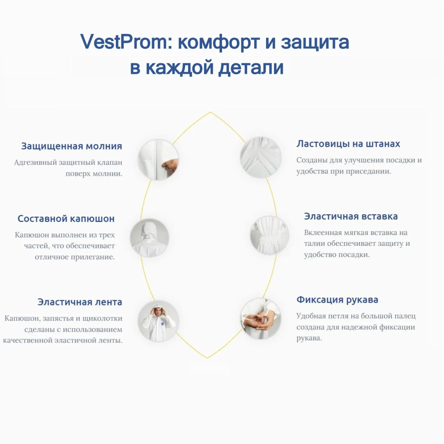 О товаре «Комбинезон одноразовый защитный Vest-Prom 600,белый,р.XL»