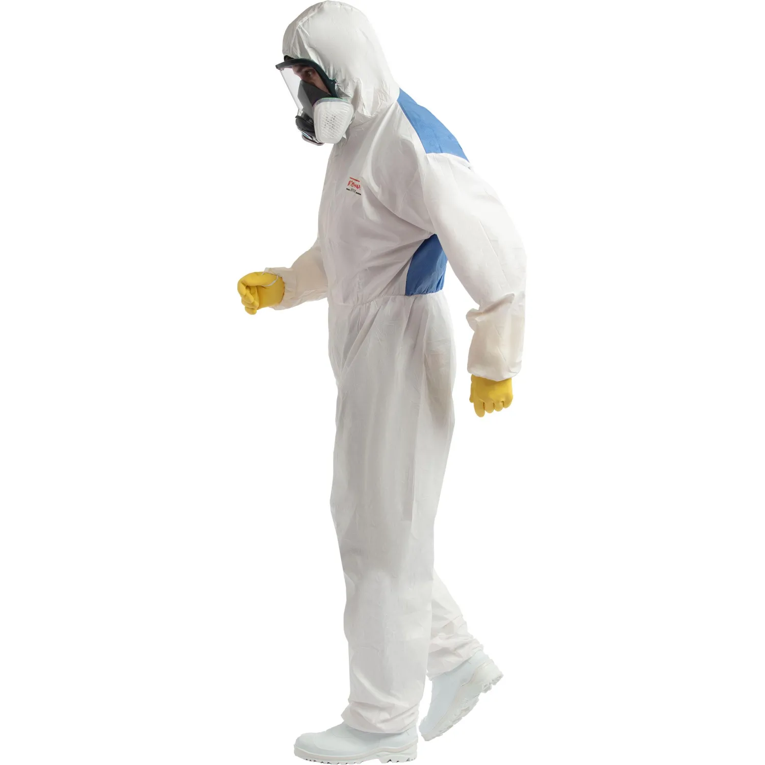 Модель оснащена трехпанельным эргономичным капюшоном и двусторонней молнией с защитным самоклеящимся клапаном, что обеспечивает дополнительную герметичность и повышает комфорт при использовании за счёт продуманной функциональности. Это упрощает надевание и надёжно изолирует зону застёжки. Комбинезон сконструирован так, чтобы не ограничивать движения во время работы.