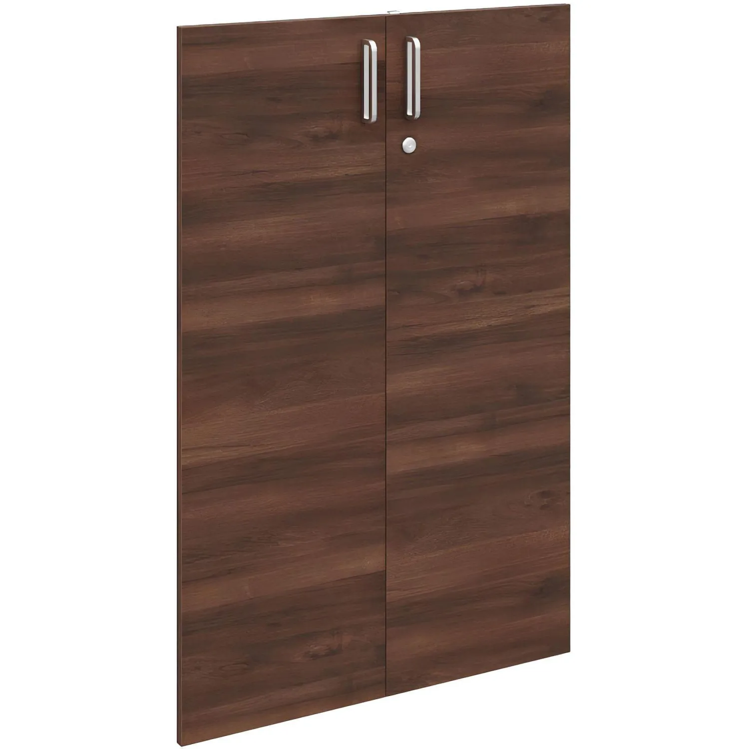 Двери Easy To Lead 129H102. Комплект глухих накладных фасадов выполнен из ЛДСП толщиной 16 мм, обработанной кромкой ABS-пластик толщиной 1 мм в цвете орех бакаут с поперечным направлением текстуры древодекора. Фасады комплектуются замком Siso. Элементы подходят к шкафу (арт. 1982258). Материал и толщина кромки — ЛДСП толщиной 16 мм, кромка ABS-пластик 1 мм.