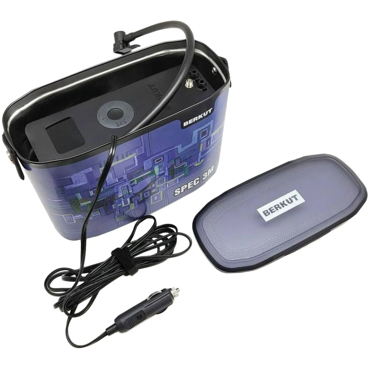 Berkut SPEC-3M — это мощный производительный автомобильный компрессор с электронным управлением, который интегрирован в стильный металлический кофр. Устройство оборудовано цифровым манометром с подсветкой, который служит для контроля давления во время накачивания колес, а также для автоматического отключения компрессора при достижении заданного уровня давления, а также удобным джойстиком управления. Компрессор построен на новейшем электродвигателе с низким потреблением и производительной поршневой камерой, не требующей смазки. В SPEC-3M реализована встроенная система охлаждения, благодаря которой компрессор может работать непрерывно без перегрева. Подключается к бортовой сети автомобиля через гнездо прикуривателя, а соединение с ниппелем шины производится за счет быстронакидного наконечника. Компрессор справится с накачкой колес любой типовой размерности и отлично впишется в любой тип и класс автомобиля.