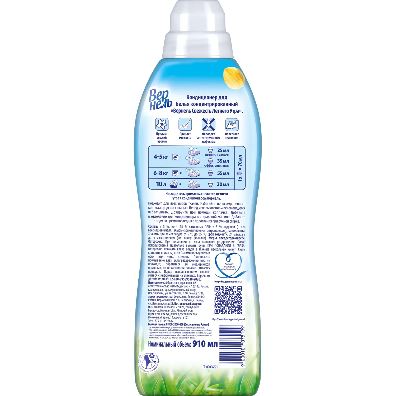 О товаре «Кондиционер для белья Vernel Свежесть летнего утра 910мл_тендер»