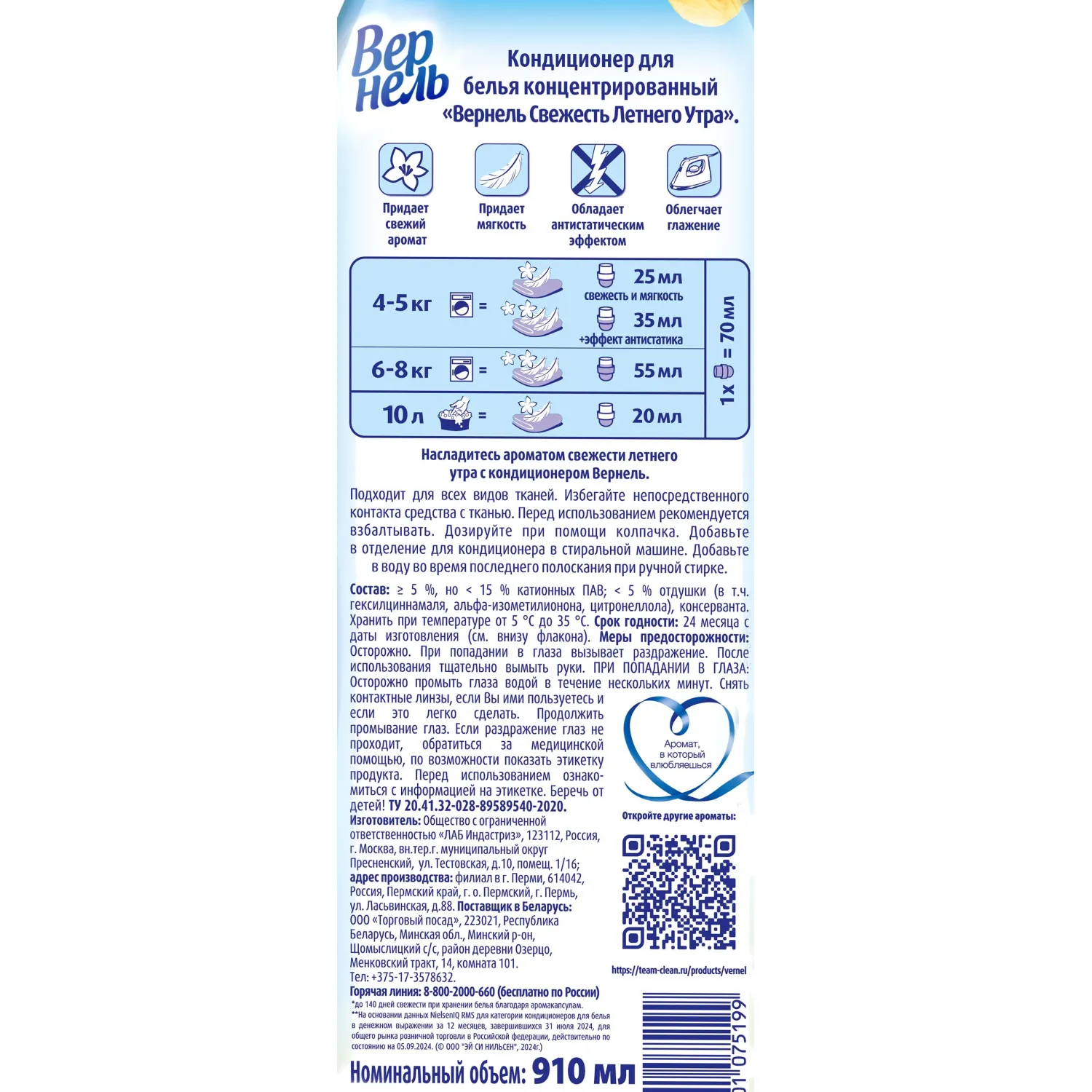 Кондиционер для белья Vernel Свежесть летнего утра 910мл_тендер