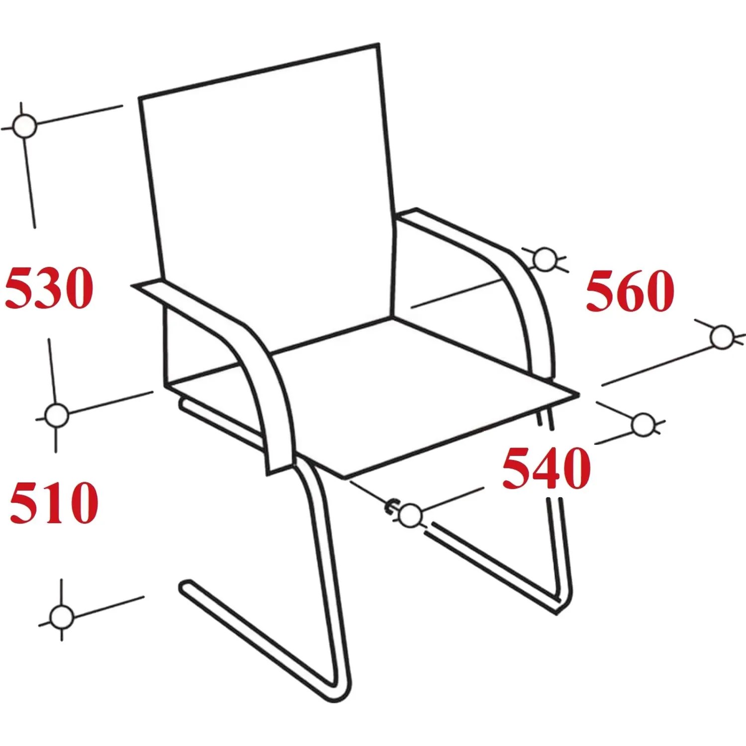 Высота сиденья фиксирована и составляет 510 мм, глубина сиденья — 560 мм, внутренняя ширина — 540 мм. Высота спинки — 530 мм. Кресло не оснащено механизмом качания. Максимальная статическая нагрузка — 120 кг.
