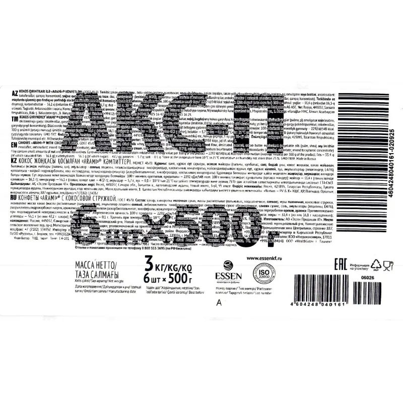 О товаре «Конфеты Arami Essen вафельные с кокосовой стружкой, пакет 500г»