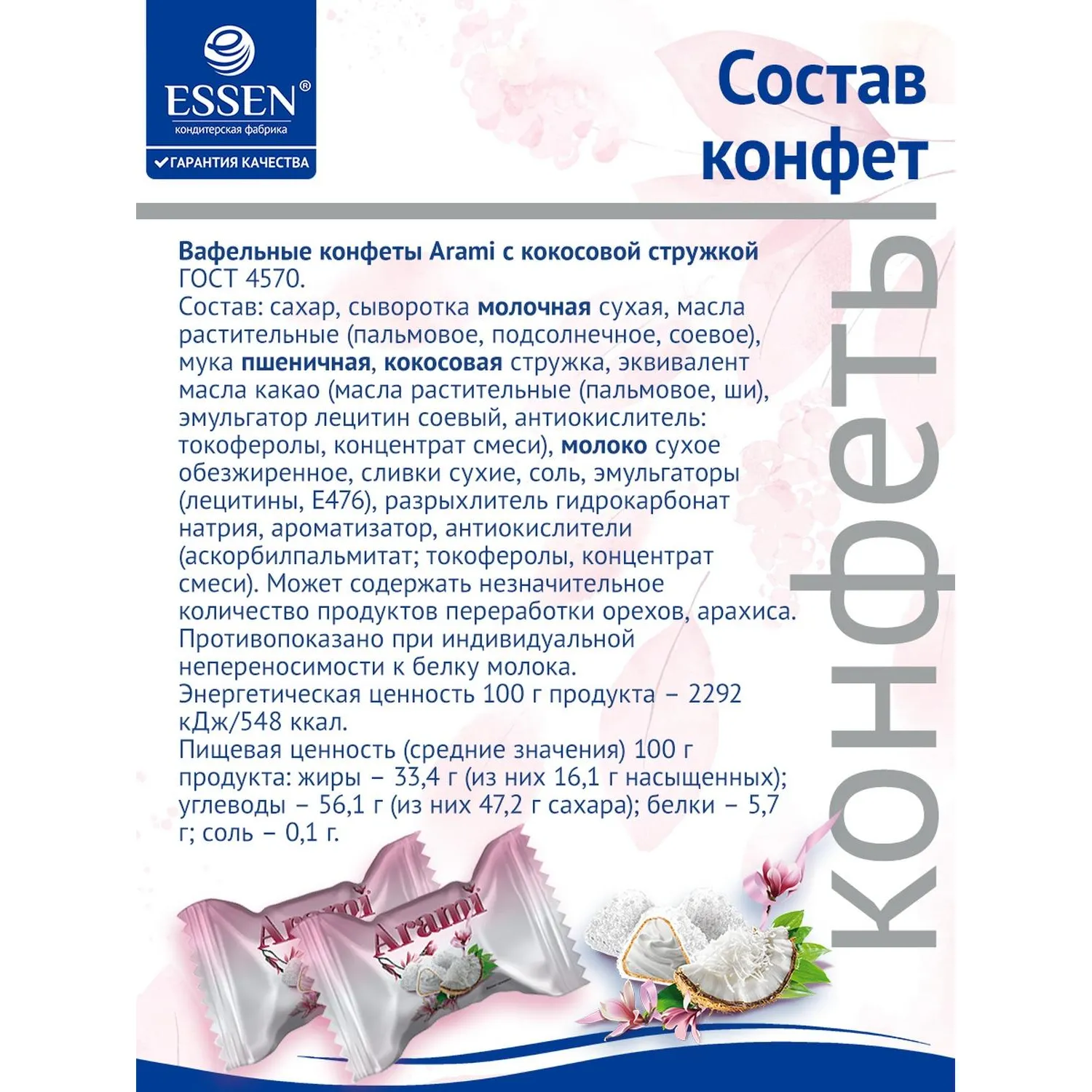 О товаре «Конфеты вафельные Essen Arami с кокосовой стружкой 500 г»