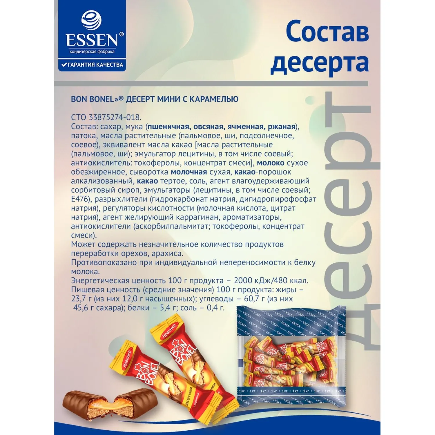 О товаре «Конфеты Essen Bon Bonel десерт мини печенье с карамелью 1 кг»