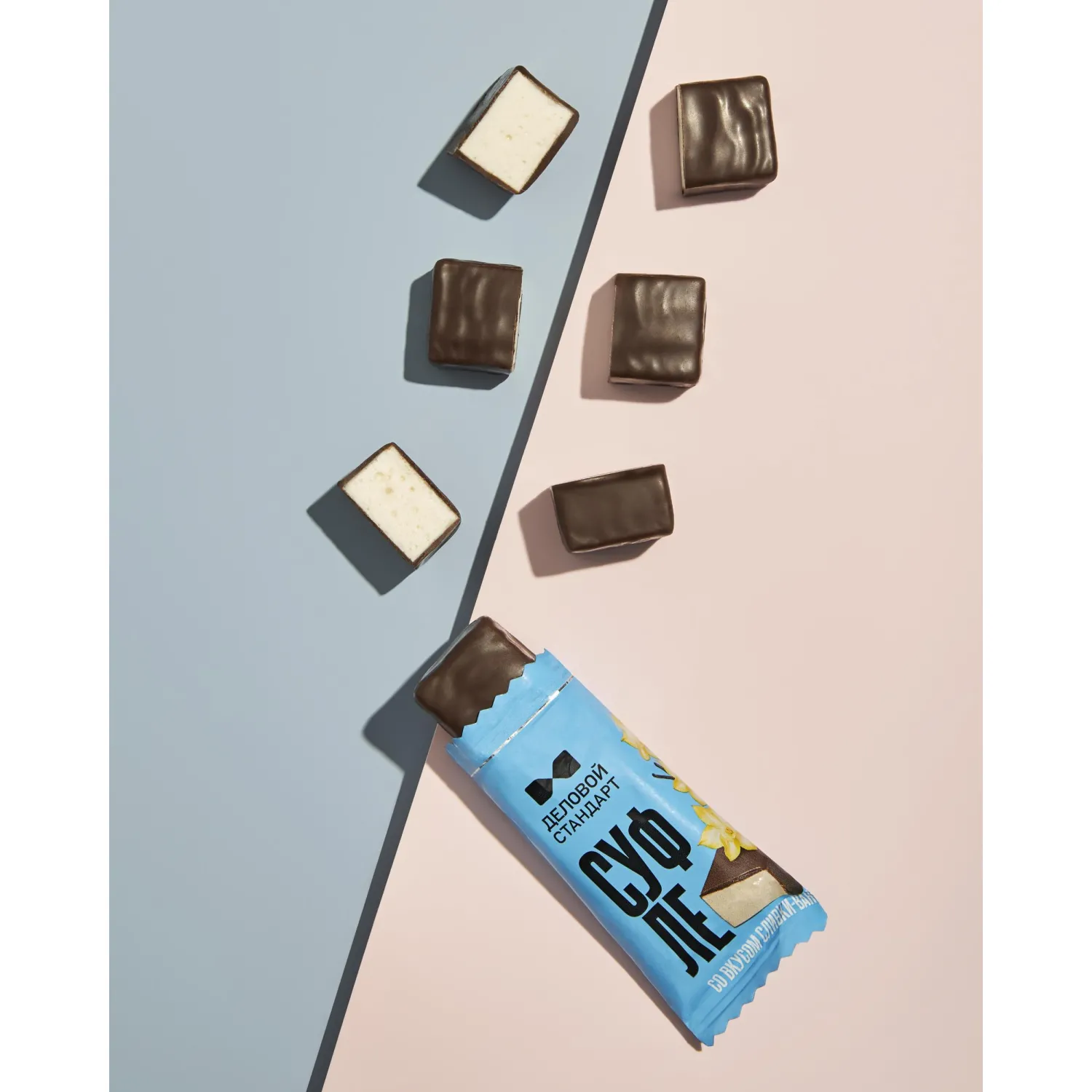 Нежная сладость ванильного суфле, покрытая глазурью, станет прекрасным дополнением к чаю или чашечке кофе. Побалуйте себя нежными конфетами Деловой Стандарт!